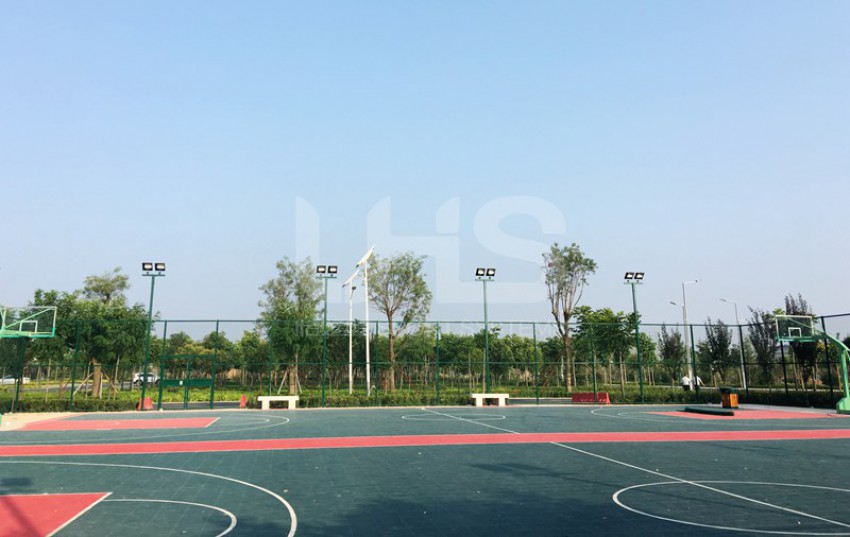 渭南市民综合服务中心是渭南新城区城市发展中轴线上的重要建筑之一,属现代化综合办公大厦,位于渭南市北部中心区核心地段,东邻三贤路,西邻六泉路,北邻车雷大街,南邻人工湖,占地53031平方米。项目位于服务中心办公大厦对面,共建有6片标准室外羽毛球场和2片室外篮球场,采用恰好时UHS-1004精钢开合拼装围网组合而成。