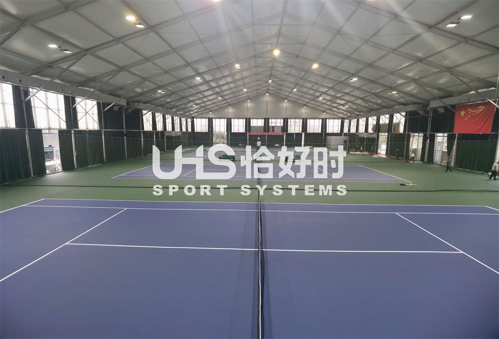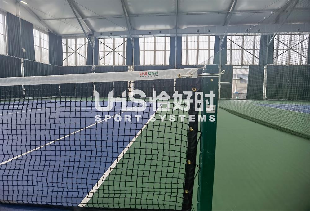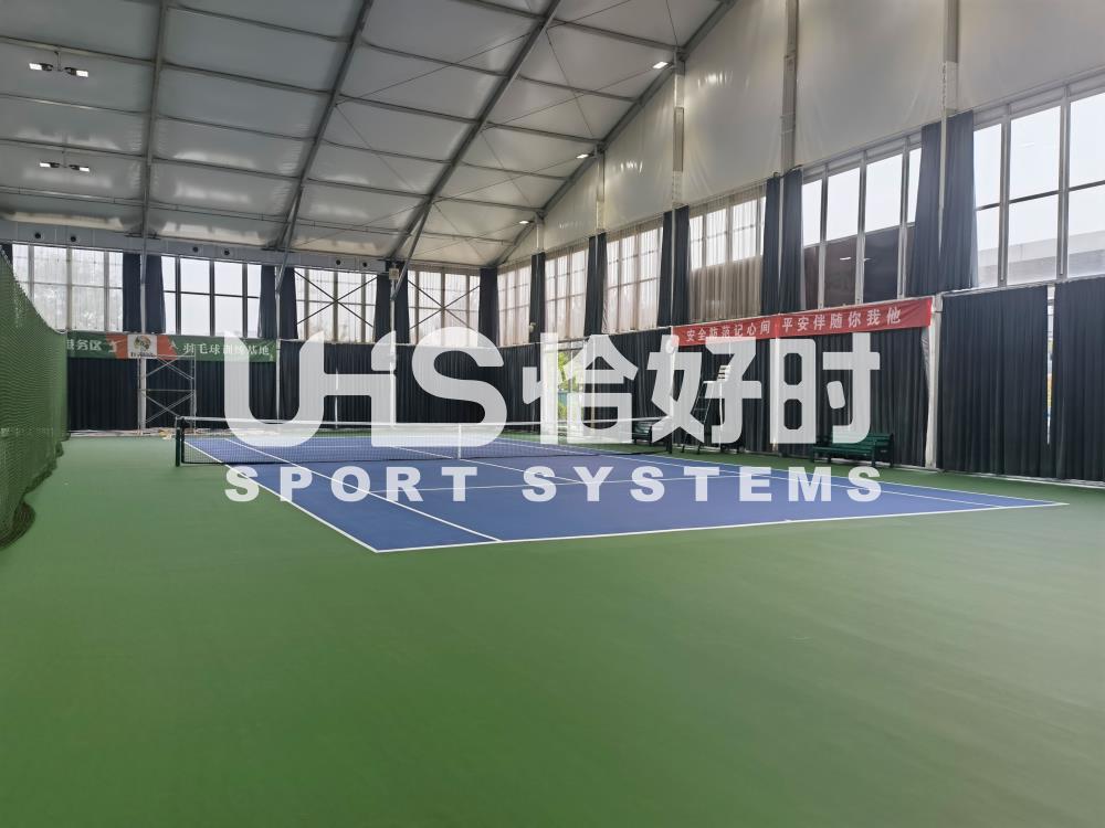陕西西安陆港运动公园位于国际港务区港务大道与秦汉大道十字西南,是西安首个特色的“体育+商业”综合性开放式街区,举办过多项网球专业赛事。其四片室内网球场地的升级改造均使用了恰好时全系产品,助力打造专业赛事级别球场!四片球场地面使用了TOPLUS托柏斯水性运动场材料,拥有耐磨、耐水、抗紫外等功能,使球场经久耐用,大大延长球场的使用年限。