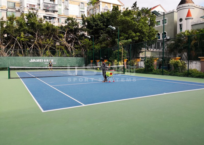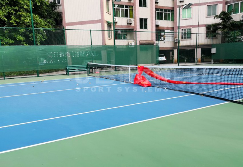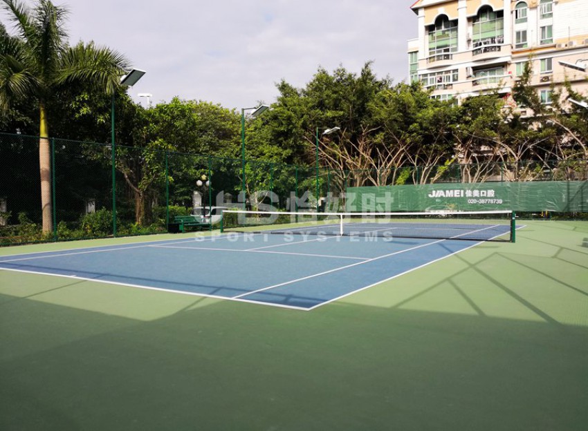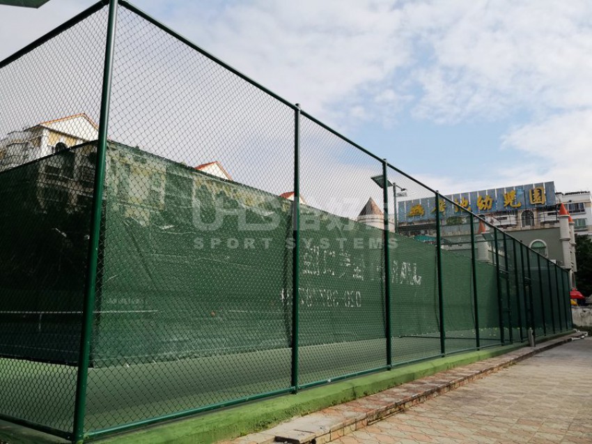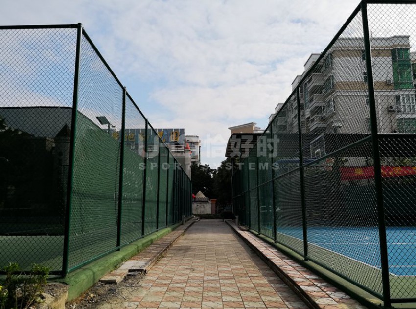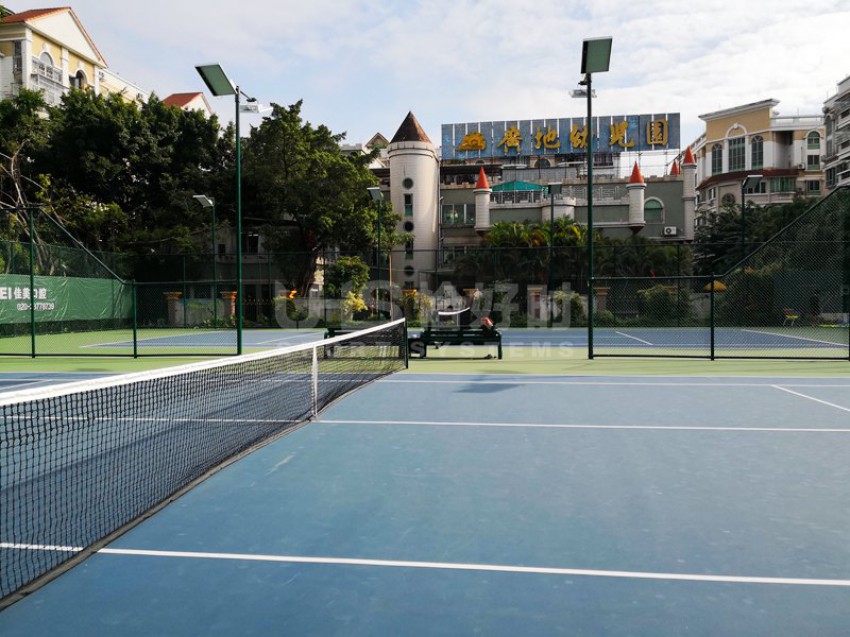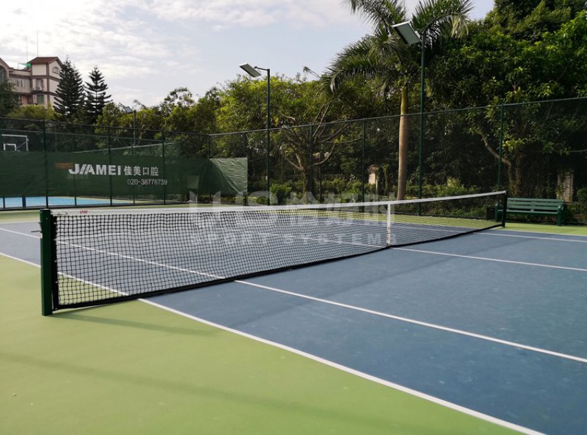 广州市番禺广地花园位于番禺区南村镇迎宾大道塘西路段华南快速入口附近。与广州海珠区仅一江之隔,是番禺区著名的洋房式小区。项目是位于小区内的6片球场,分别有3片室外硬地网球场、1片室外篮球场和2片膜结构羽毛球场。项目于今年9月份开始翻新,并于11月完成竣工。网球场的围网采用UHS-1007精钢冲压拼装围网组装而成,篮球场和羽毛球场围网采用传统焊接式安装。球场器材包括网球网、网球柱、推水器、防风网和部分休息椅为恰好时提供。
