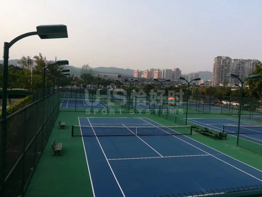 香蜜湖云之力网球中心位于深圳市福田区深南大道6038号香蜜湖度假村园区内。该网球中心共建有8片标准的室外网球场,于今年9月竣工。所有球场围网均为恰好时品牌的PE包塑围网,包括灯光、休息椅、网球柱、网球网也是恰好时提供。