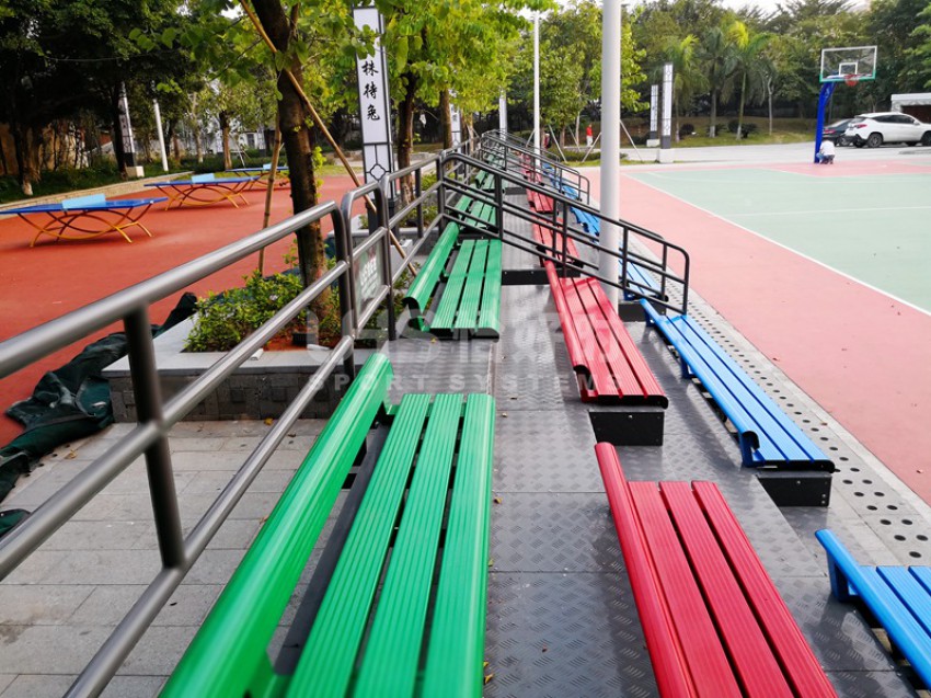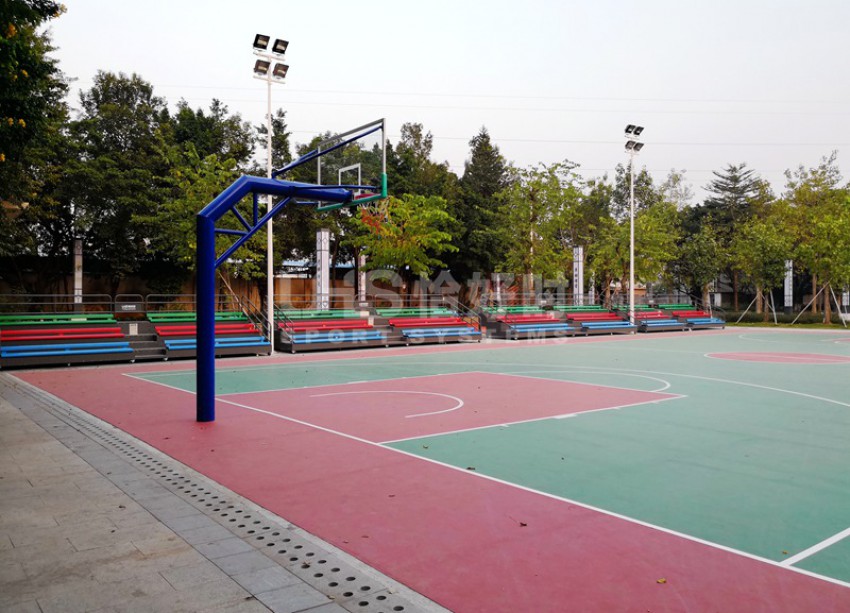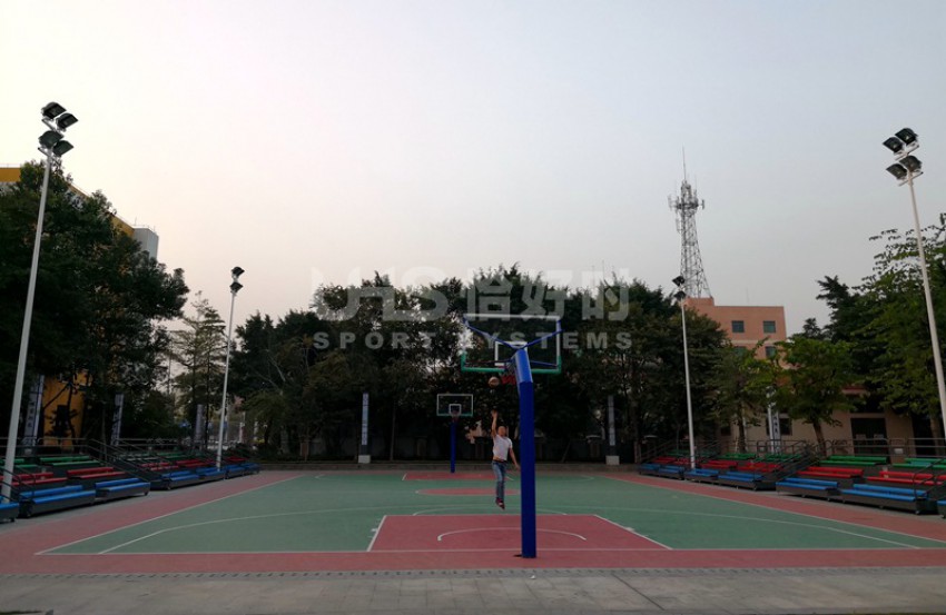 佛山市三水区白坭文化广场位于白坭镇工业大道79号,是白坭镇市民休闲、运动、歌舞的活动场所。该文化广场建有一片全民开放的篮球场。篮球场两边采用恰好时特殊定制的可移动三色看台座椅,球场灯光采用FG-400W泛光灯。