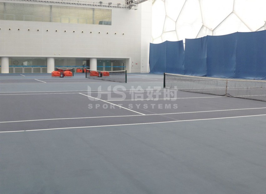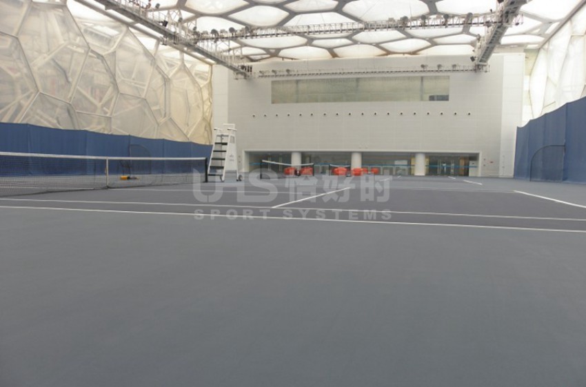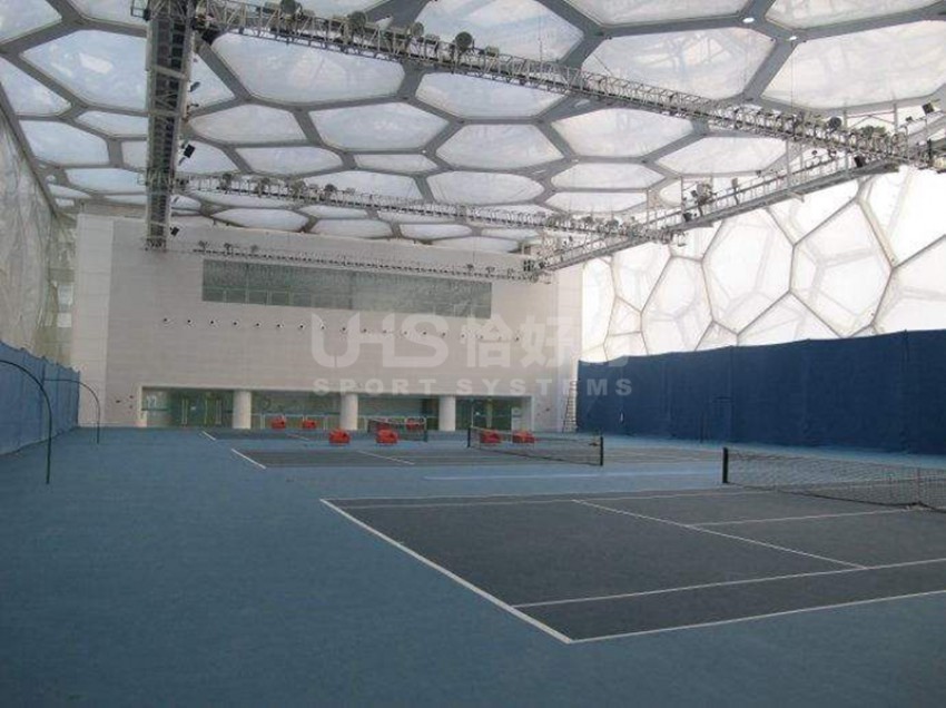 水立方网球俱乐部(Water Cube Tennis Club)位于北京市朝阳区国家游泳中心又称“水立方”的二层,由三块标准的室内网球场构成,占地2400平方米,宽40米,长60米,高18米,场馆内宽阔明亮,硬件设施全部按照国际比赛标准设计,可同时容纳超过1000人在此自由活动。恰好时提供的场地器材包括裁判椅、网球柱、网球网和休息椅。