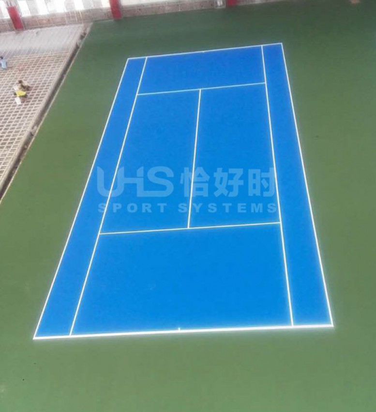西安建筑科技大学坐落于历史文化名城西安,现有雁塔、草堂两个校区和一个科教产业园区。项目位于西安市碑林区雁塔路中段13号的雁塔校区的校园内室内网球场。球场地面均采用恰好时旗下丙烯酸品牌托柏斯,颜色为内场土耳其蓝外场草绿。