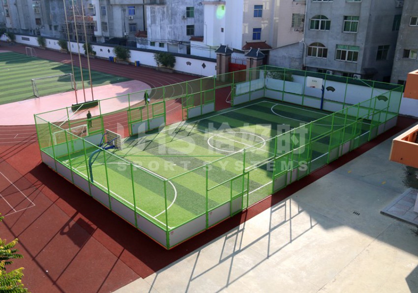 霞浦县民族中学1986年创办于霞浦县崇儒乡,位于松城街道松城街道太康路27号。学校占地面积17.3亩,现有21个教学班,学生1093人,项目是校园内一座5人制笼式足球场(兼篮球场)。采用UHS-0201国体认证笼式足球场系统围建而成,其中两边各设3个双开左右推拉门。方便学生进出球场。同时该笼式足球场还配有篮球场,可谓足篮两用的多功能球场。