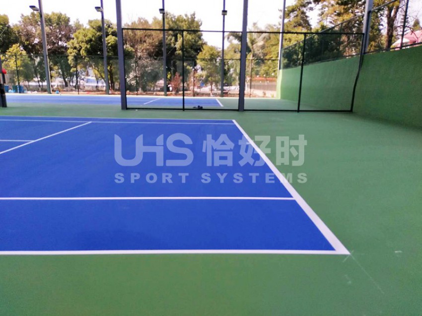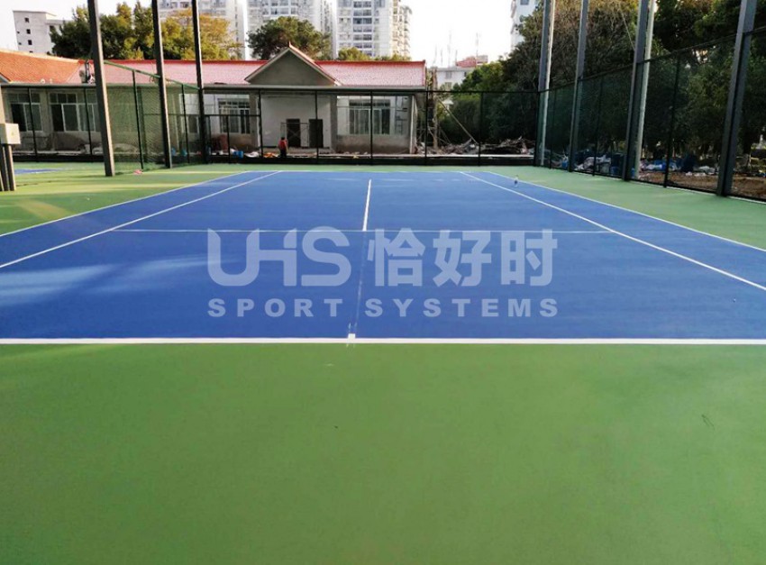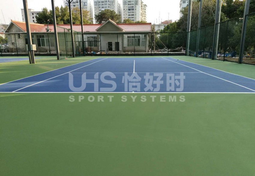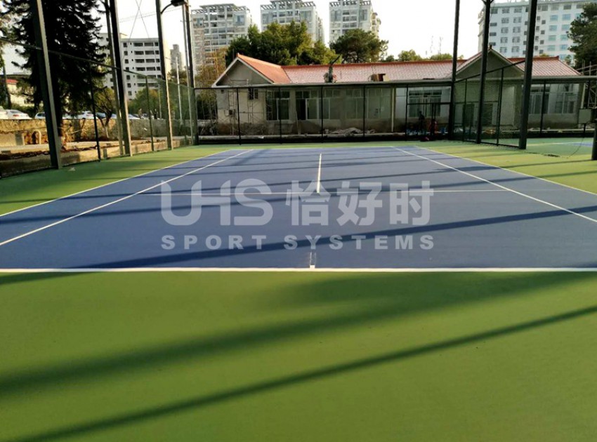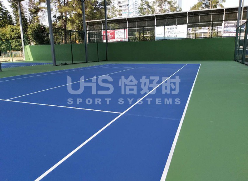 广西贺州市公安局交警支队位于八达西路368号,这里建有两片室外的硬地网球场,于今年年初进行了翻新改造。所使用的地面材料从底层到面层均为恰好时独家代理的马贝TNS系统精心打造。采用的工法为马贝TNS舒适型(即传统的高弹型工法),使用的面层颜色为内蓝外绿。值得一提,这也是马贝TNS系统在广西区域的首片球场。
