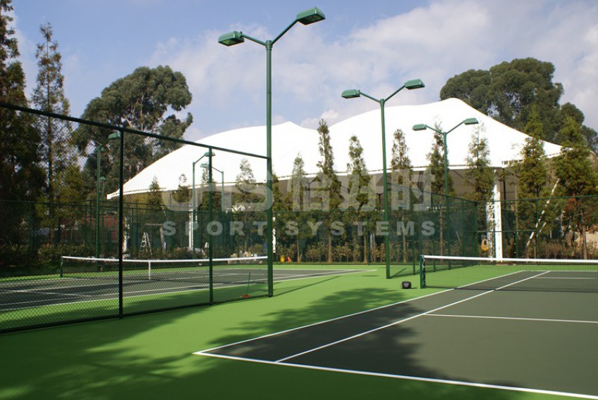世博生态城位于云南省昆明市盘龙区世博路9号,占地255.7公顷,这是一个低楼层、低密度、低能耗、低排放、低污染的生态社区。小区内建有4片标准的网球场,其中2片是膜结构的室内网球场,2片为室外网球场。恰好时提供的产品包括围网、网球柱、网球网、隔离软网、吸水器、推水器等配套设施。