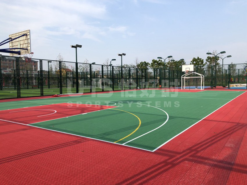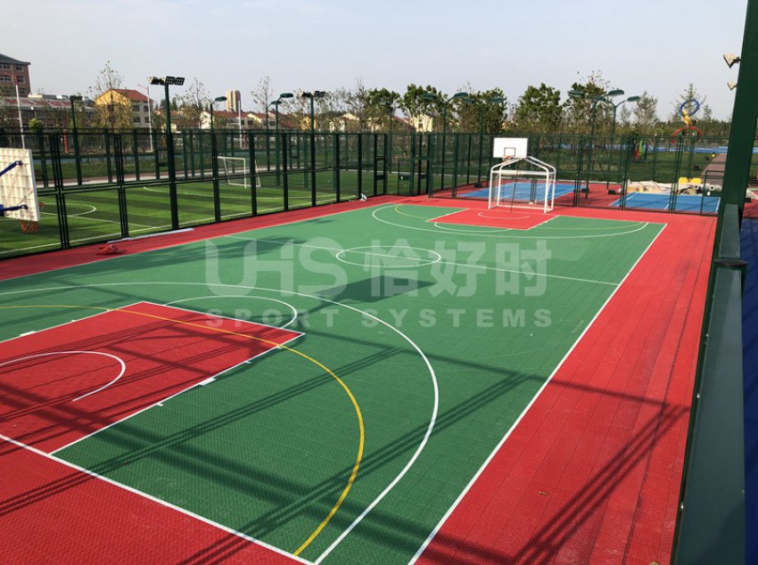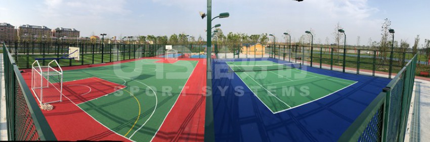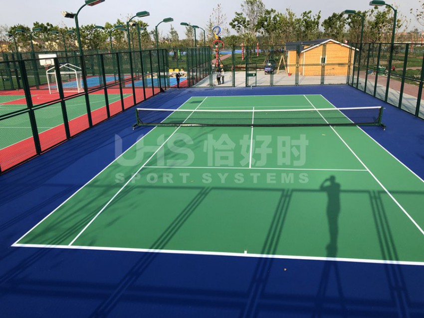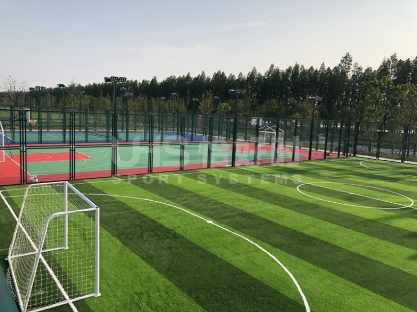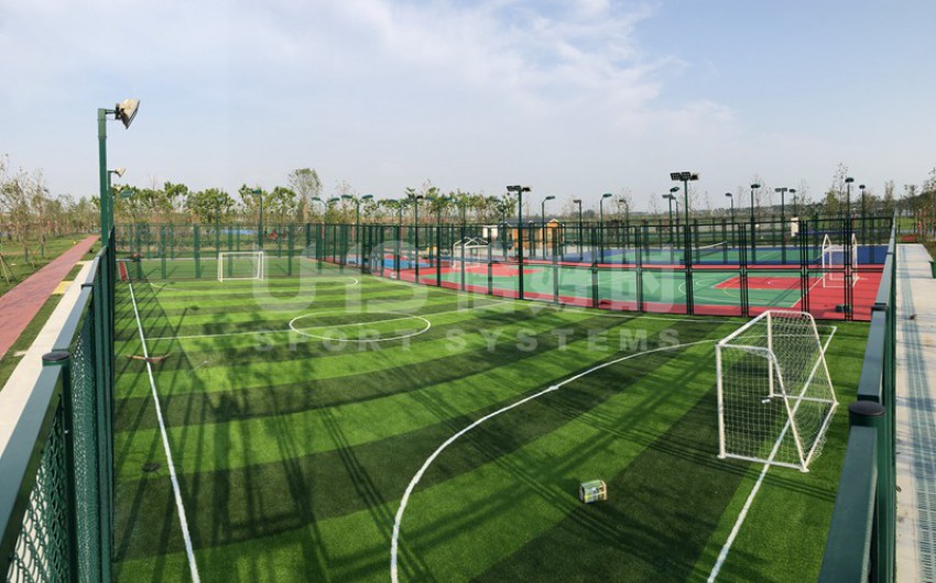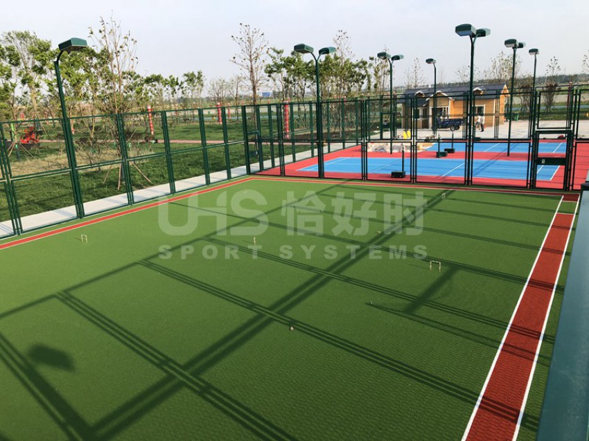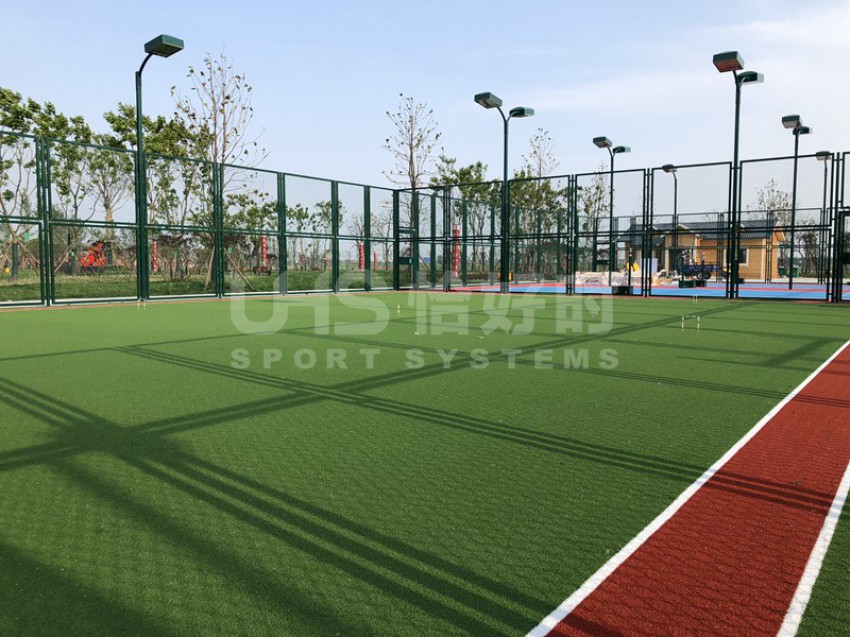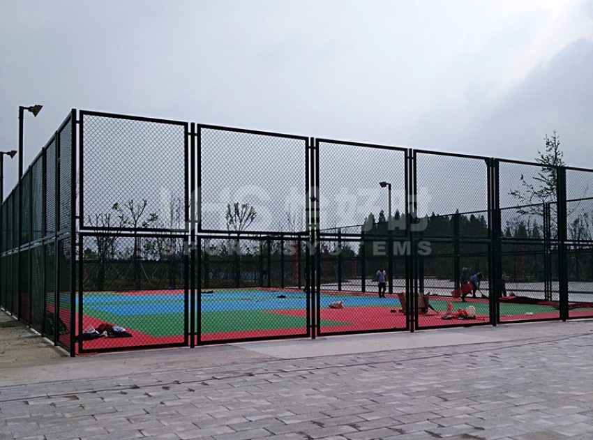 湖北潜江马拉松公园位于湖北省潜江市的返湾湖湿地公园附近,是潜江举办国际马拉松赛事而修建的体育公园。项目分为两部分:位于张家台的半马广场有1片篮球场和羽毛球场组合的多功能场地;位于前进一路的马拉松公园共有6片场地,包括1片5人制足球场、1片拼装地板篮球场、1片硬地网球场、2片排羽场和1片门球场。项目于今年5月中旬竣工,全部场地器材包括围网、灯光、足球门、网球柱网球网和其他配套设施。其中围网采用恰好时UHS-1006钢结构框架内藏式拼装围网组合而成。