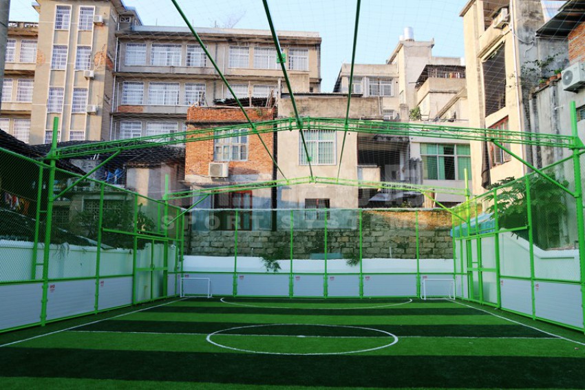 福建省宁德市霞浦县第八中学,是福建省宁德市霞浦县一所新成立的初级中学,具体位于霞浦县松城镇培德巷35号。其校训为“厚德、博学、自强、至善”。项目是校园内一座背靠居民楼的笼式足球场,采用恰好时UHS-0201国体认证笼式足球场系统搭建而成,并于球场四周设有双开的推拉门,方便球员进出。