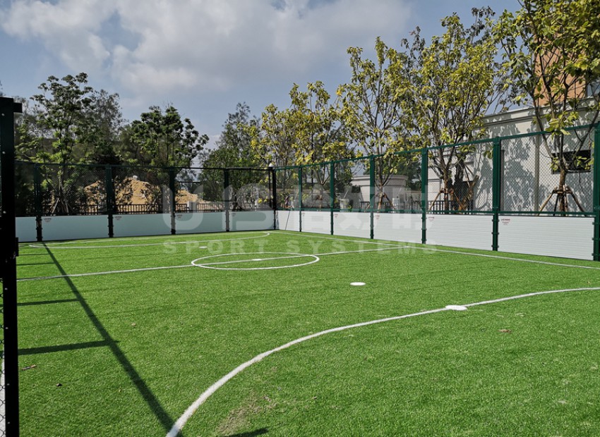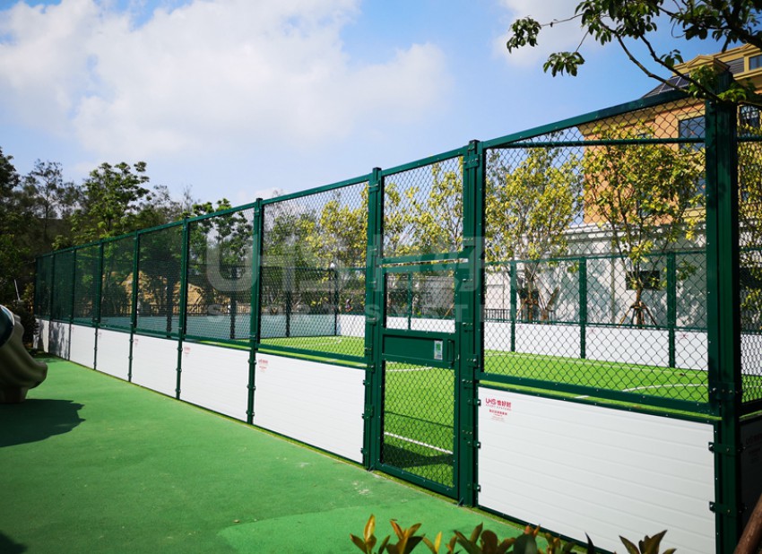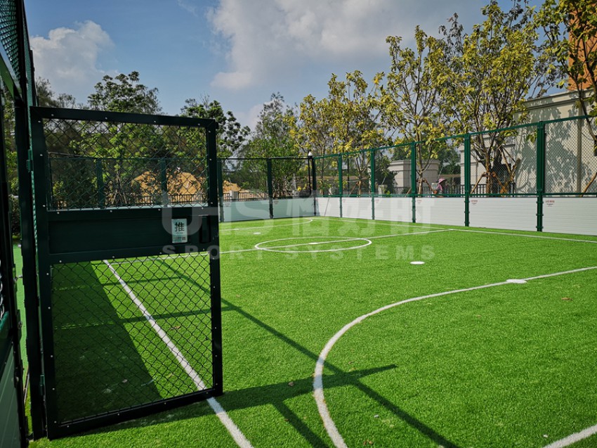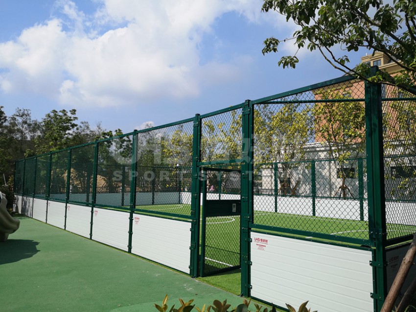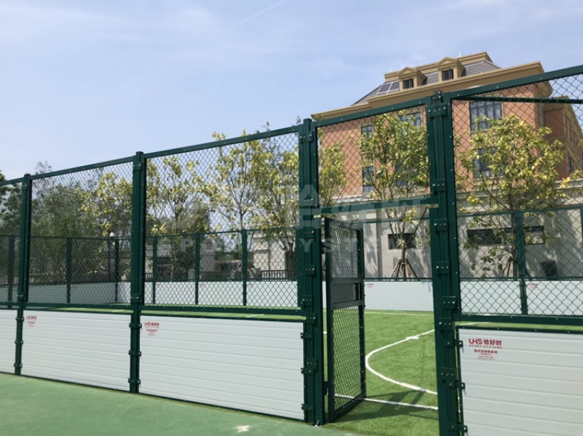 融侨国际双语学校位于福建省福州市长乐滨海新城金滨路,是融侨在国内打造的首个国际学校,占地总面积238.96亩,总建筑面积约12万平方米。涵盖幼儿园、小学、初中、高中教育四个阶段。项目是校园内的一座全铝合金拼装的5人制笼式足球场,其中上半围挡部分采用全铝合金组合式围网构建,下半部分是铝合金配锌合金复合挡板。