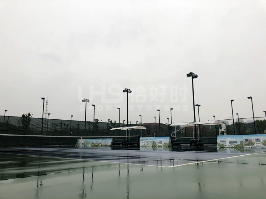 中共江西省委党校创办于1950年4月,江西行政学院始建于1981年12月,2001年8月1日校院合并,实行“二合一”办学体制。位于江西省南昌市红谷滩新区龙虎山大道1866号。项目是学院内部的文体中心的5片网球场、2片篮球场和1片气排场,从配套设施、围网、灯光及一片网球场地面均使用恰好时品牌。