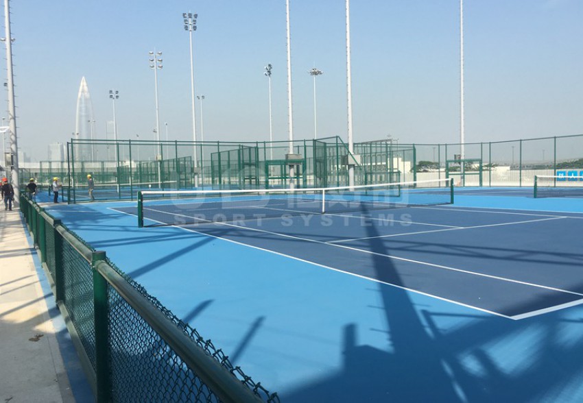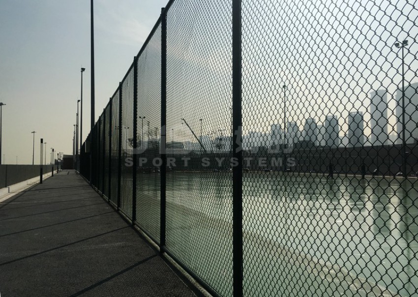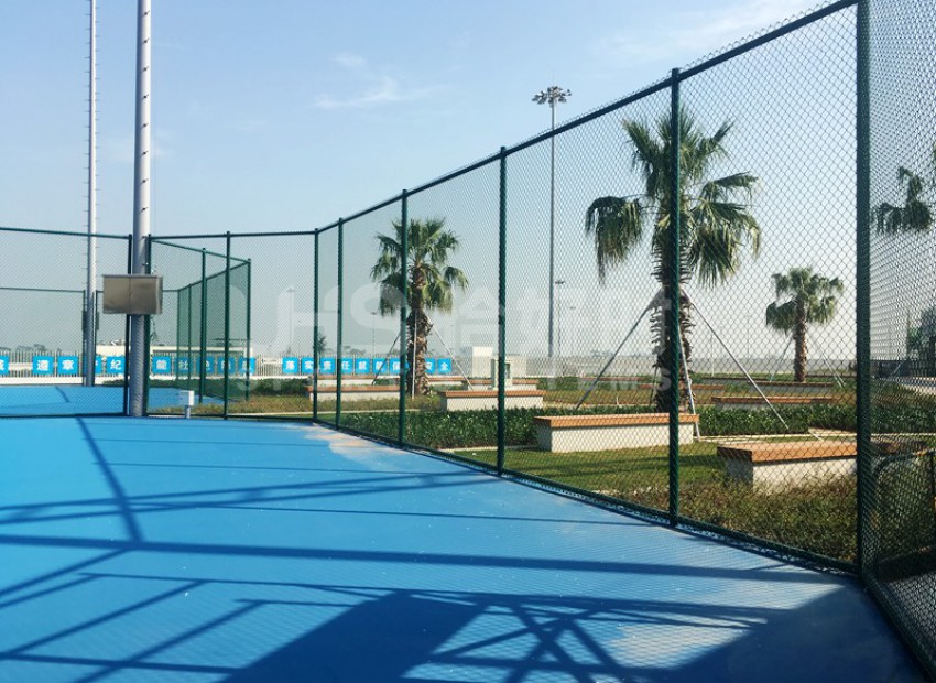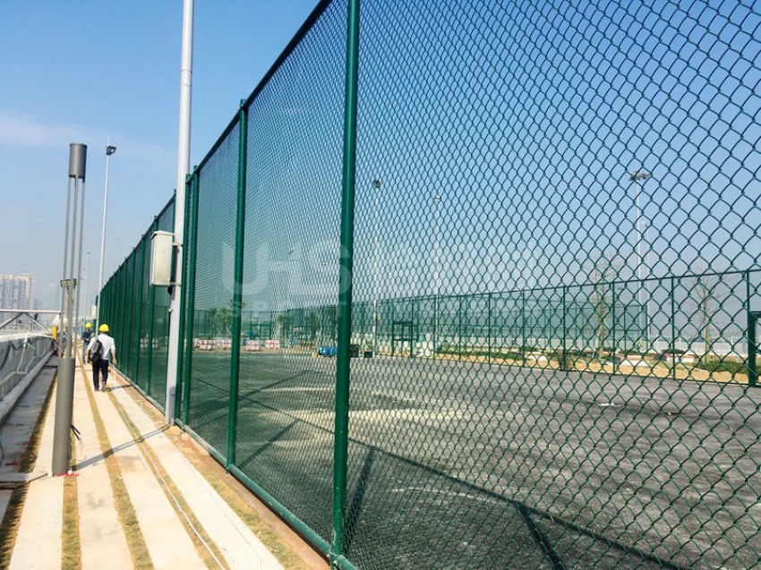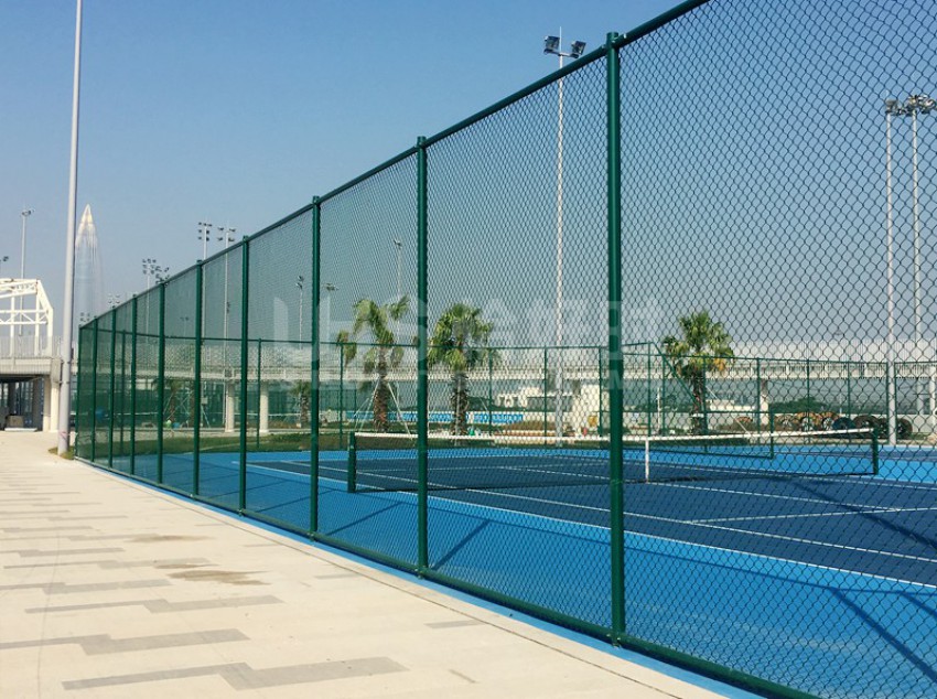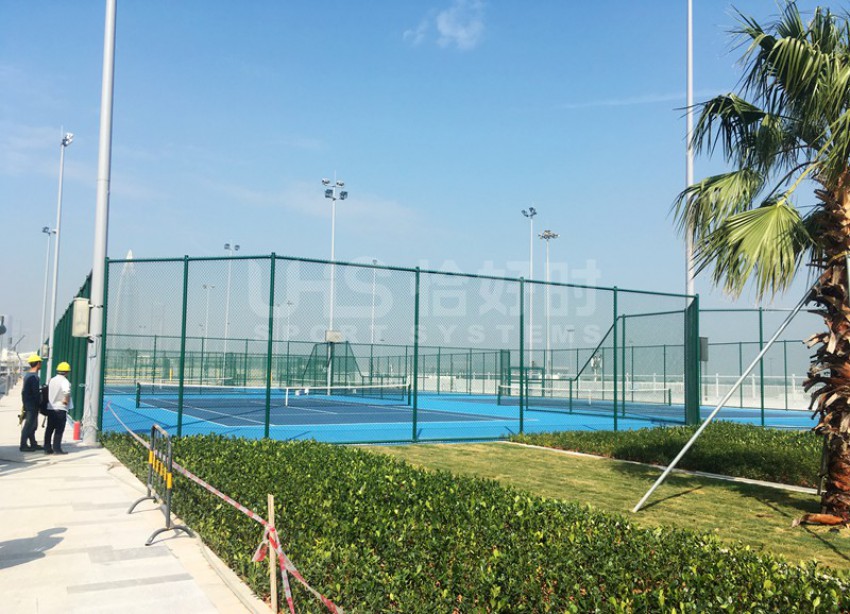 深圳后海体育健身休闲广场是近期刚刚竣工的又一个代表性项目工程。位于深圳市南山区中心路与科苑路交叉路口附近。背靠深圳湾口岸,毗邻深圳湾运动公园。与对面的香港隔海相望仅有5公里距离。该项目共建有30片球场,包括足球场和网球场,其中包括2片7人制人造草足球场、19片网球场(包括16片硬地网球场、2片红土网球场、1片草地网球场)、6片篮球场、2片沙滩排球场。围网总面积超过1万平米,其中围网采用恰好时热销系列UHS-1007精钢冲压拼装围网系列,部分球场的围网则采用UHS-1006钢结构框架内藏式拼装围网系列。同时所有网球场的网球柱及网球网也都是恰好时提供。