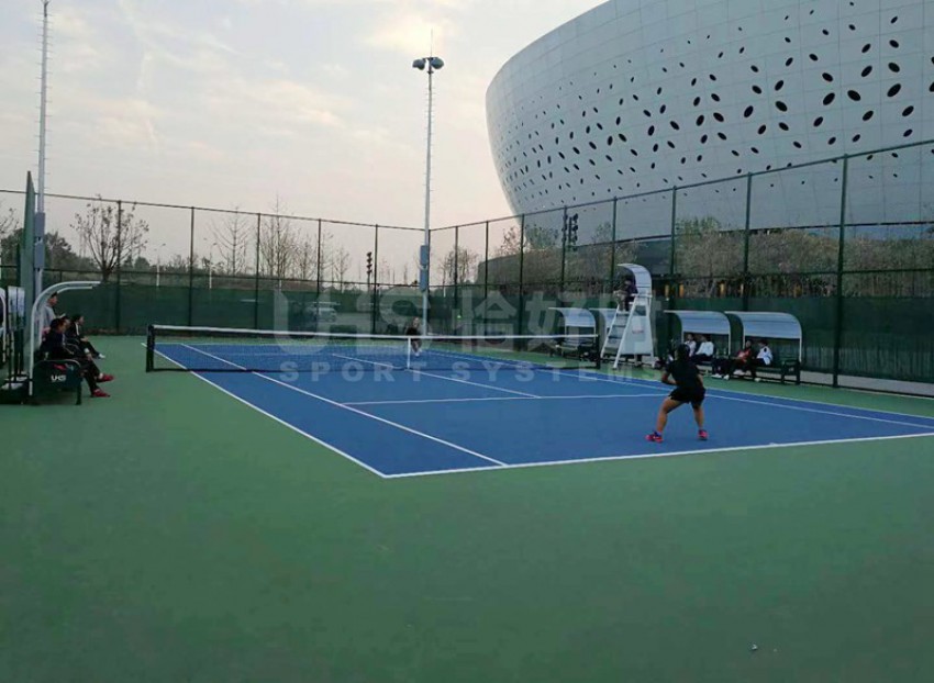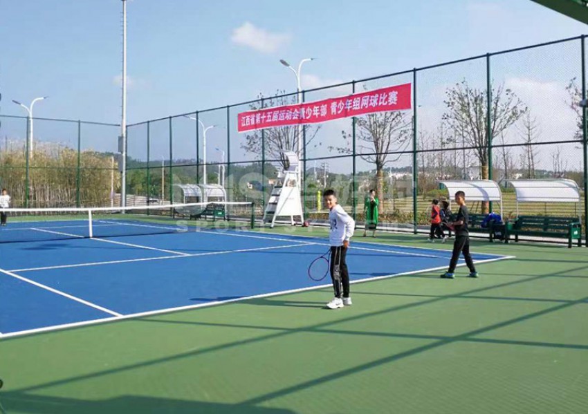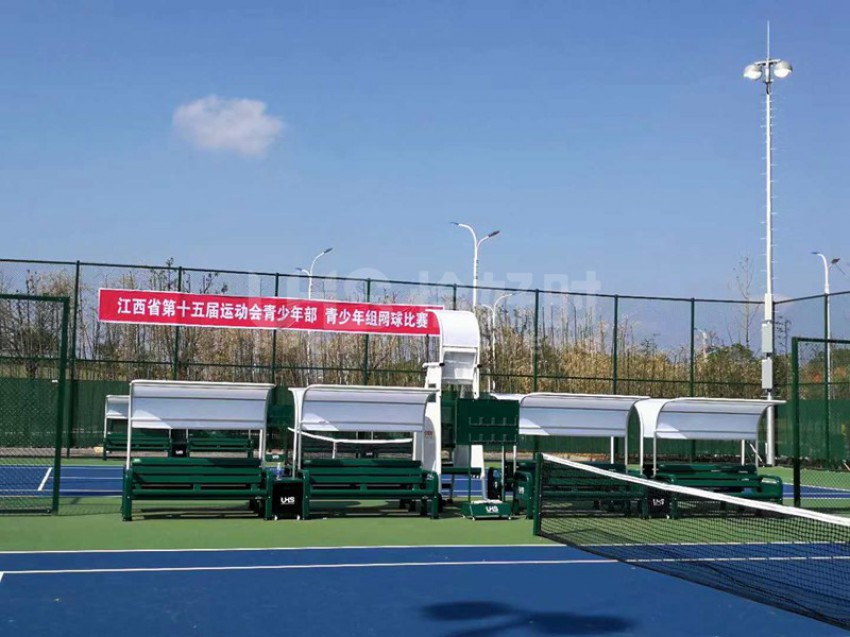 景德镇市浮梁体育中心在今年10月28日-11月5日成功举办了江西省第十五届运动会,其中网球比赛场地的器材全部采用恰好时产品,包括裁判椅、休息椅、网球柱、网球网、记分牌等。