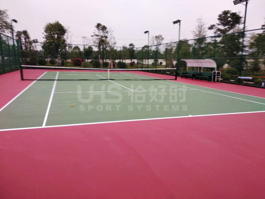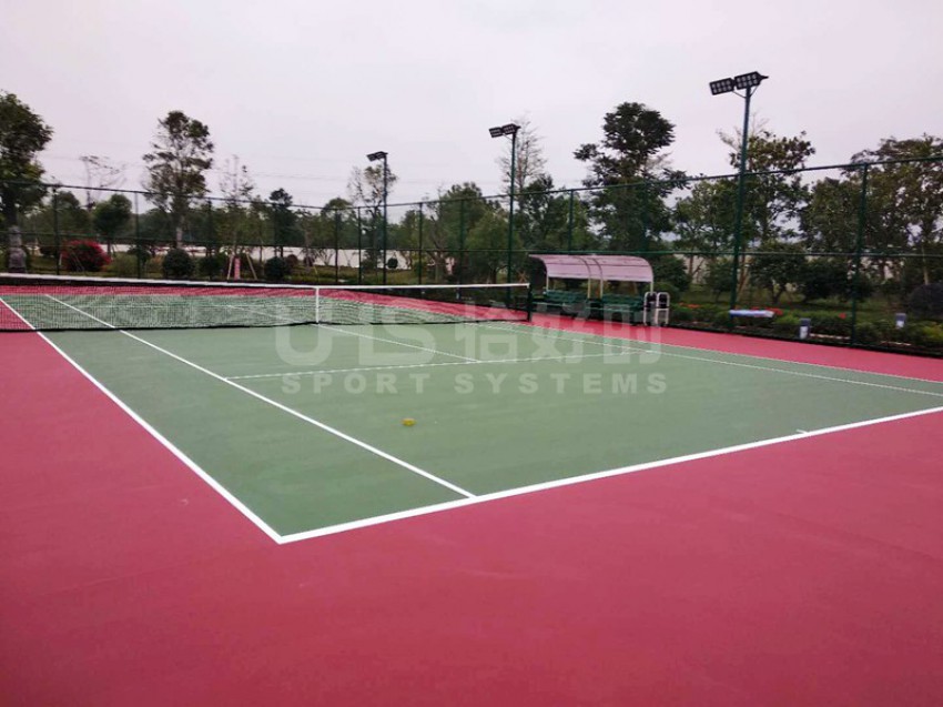 汕头市成田简朴初级中学位于汕头市潮南区成田镇,迎着新世纪的曙光,沐浴着课程改革的春风,汕头市潮南区成田简朴初级中学如同一颗散发着诱人芬芳的蓓蕾,在广东省汕头市潮南区成田镇简朴徐徐绽放。该校园内一片网球场所有配套设施包括围网、灯光、休息椅、网球柱网均为恰好时供应,此外,地面涂料也是恰好时引进的意大利马贝TNS系统,采用马贝专业型工法,颜色为内绿外红。