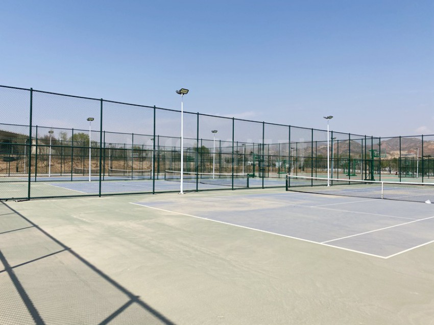 海东市体育中心位于海东市乐都区职教城片区,东临海东大道,西临向阳三街,南侧是文教路,北侧为卫民路。该体育中心于近期全面竣工。这座自2016年10月开建,历时近四年,投资6.35亿元的大型体育中心将成为海东市的新地标建筑。建成后,将成为集河湟特色、人文内涵、体育健身为一体的综合性体育场所。可承接国内二类赛事,例如全国农民运动会等。届时,也将为海东市民提供良好的赛事和健身场地。包括1片田径场、4片网球场、6片篮球场均采用恰好时知名的UHS-1007精钢冲压扣件拼装围网系列,其中4片网球场的配套器材也出自恰好时。