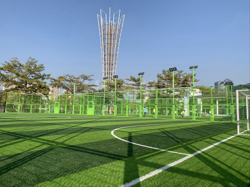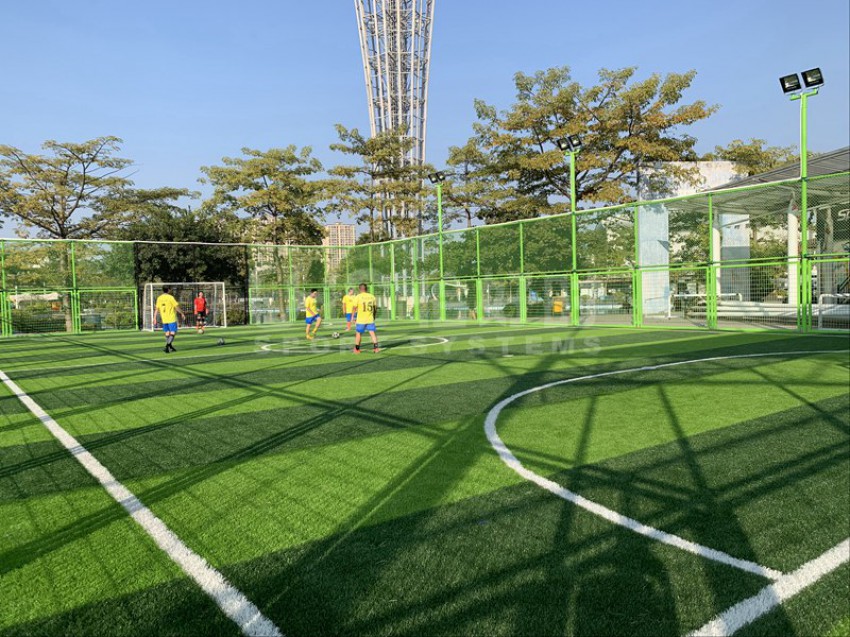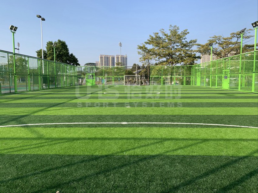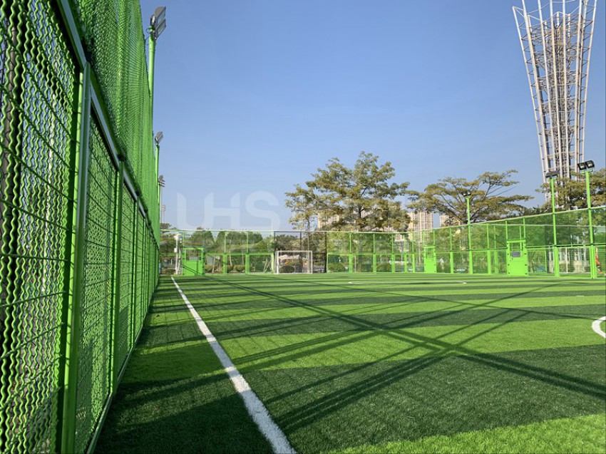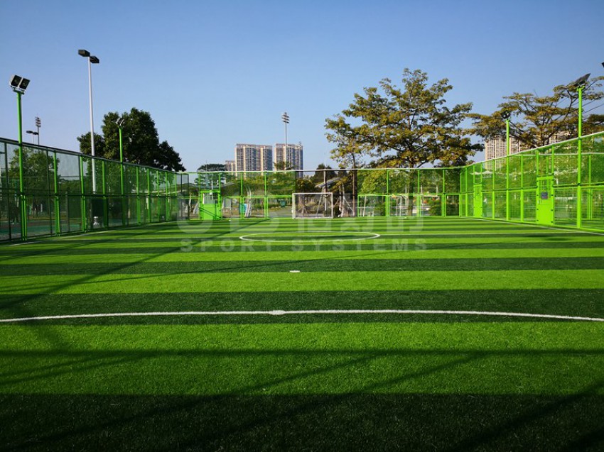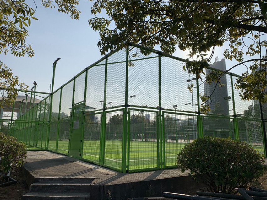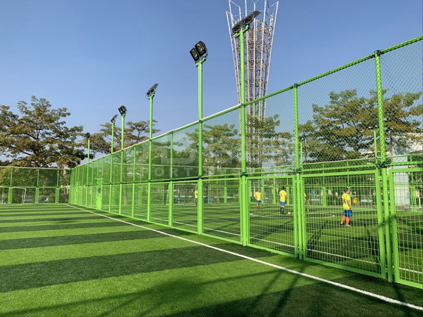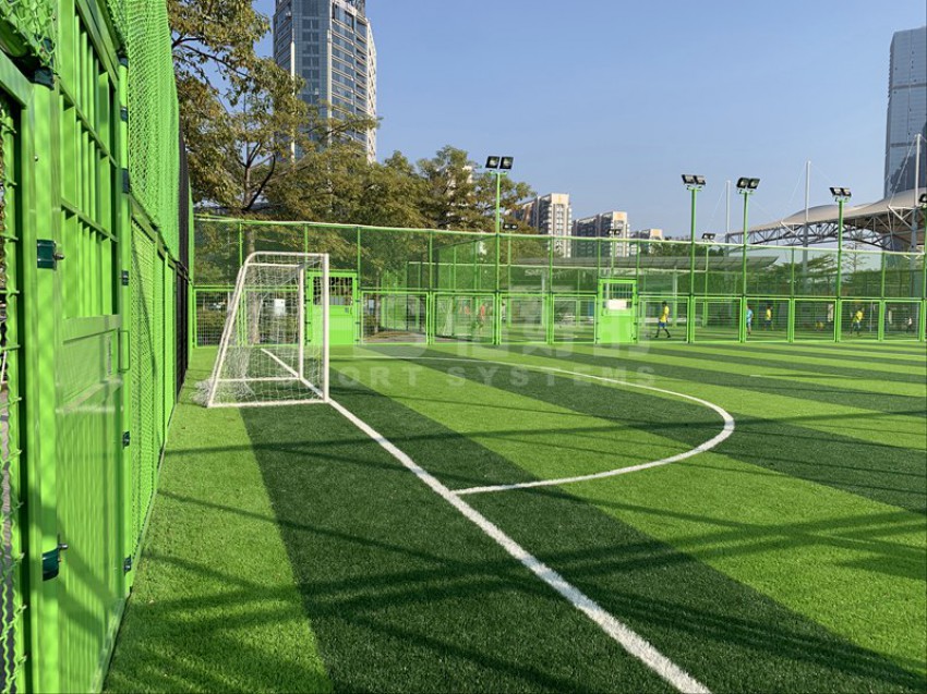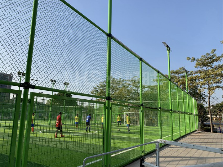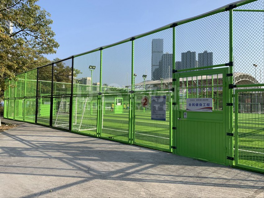 东莞市滨江体育公园北临东江,西邻四环路,南接鸿福路,东延东江大道,位于东莞新汽车总站附近。该公园建有11人足球场兼田径场、篮球场、网球场、5人制足球场和室内体育馆等。项目是公园内新建的两片五人制足球场,采用UHS-1008精铸合金十字扣件拼装围网和波浪网框架拼装而成,灯光是FG-400W泛光灯。