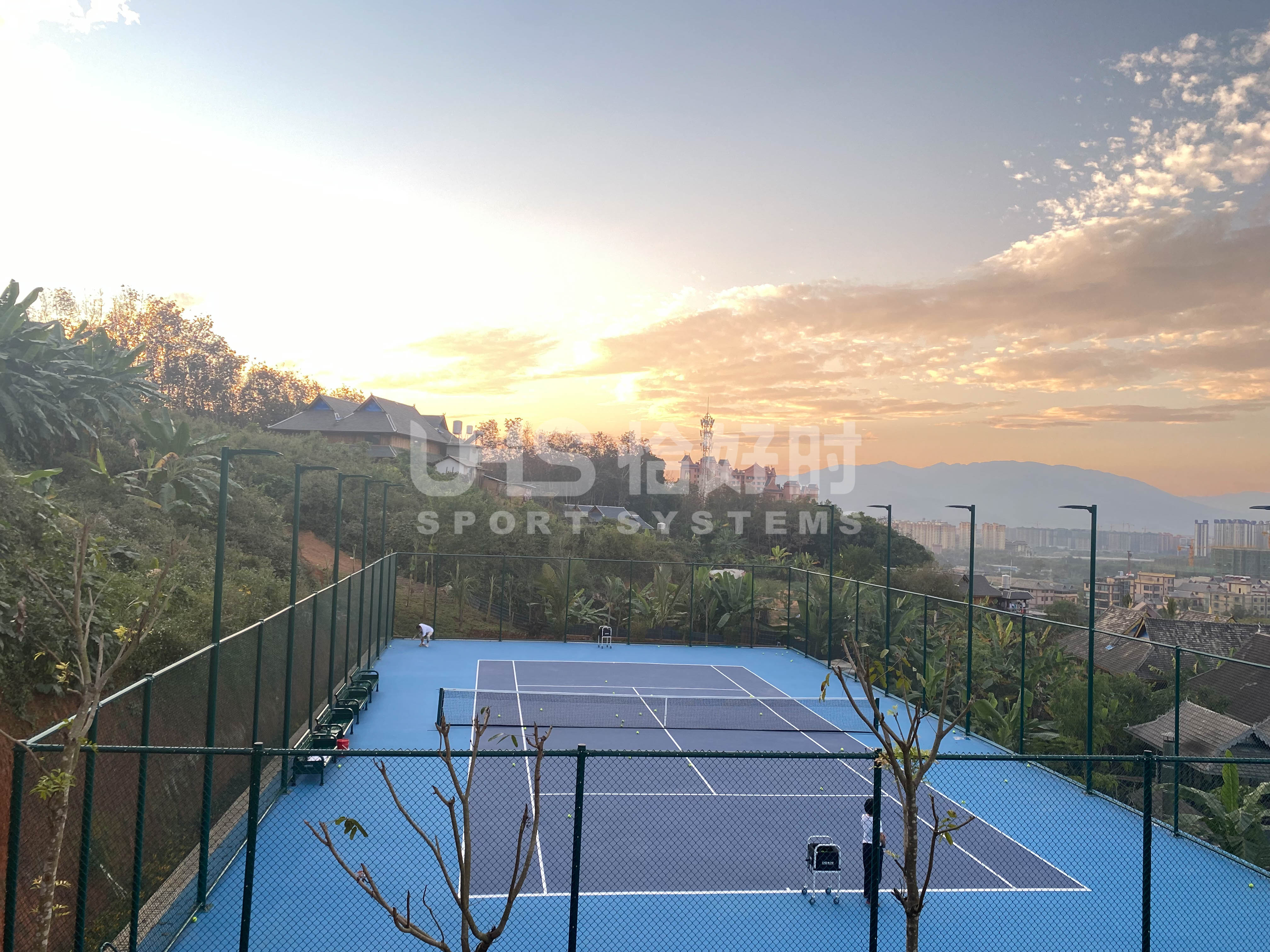 西双版纳古纳卡傣族文化园位于曼贺纳古寨,该古寨是国内西南边境保存完整的少数民族文化村落之一。在这个傣族文化与版纳风情结合的旅游胜地中,新落成的网球场让古寨显得更别具一格。该网球场均采用了恰好时全系列产品,场地选用了TOPLUS托柏斯水性运动场材料经典硬地系统,配备了明利亚照明体育系统LTC系列专业球场灯以及恰好时体育场地配套设施。