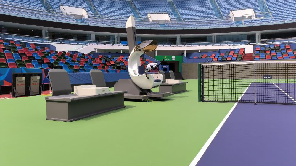 恰好时作为上海大师赛指定供应商,为赛场提供专业的网球设施,以及专业的赛事保障服务。今年大师赛亮相的恰好时太空舱智能升降裁判椅组合,是在以往的基础上全新升级设计,整体线条流畅;并采用人体工程学设计,给予裁判员、球员安全舒适的放松。