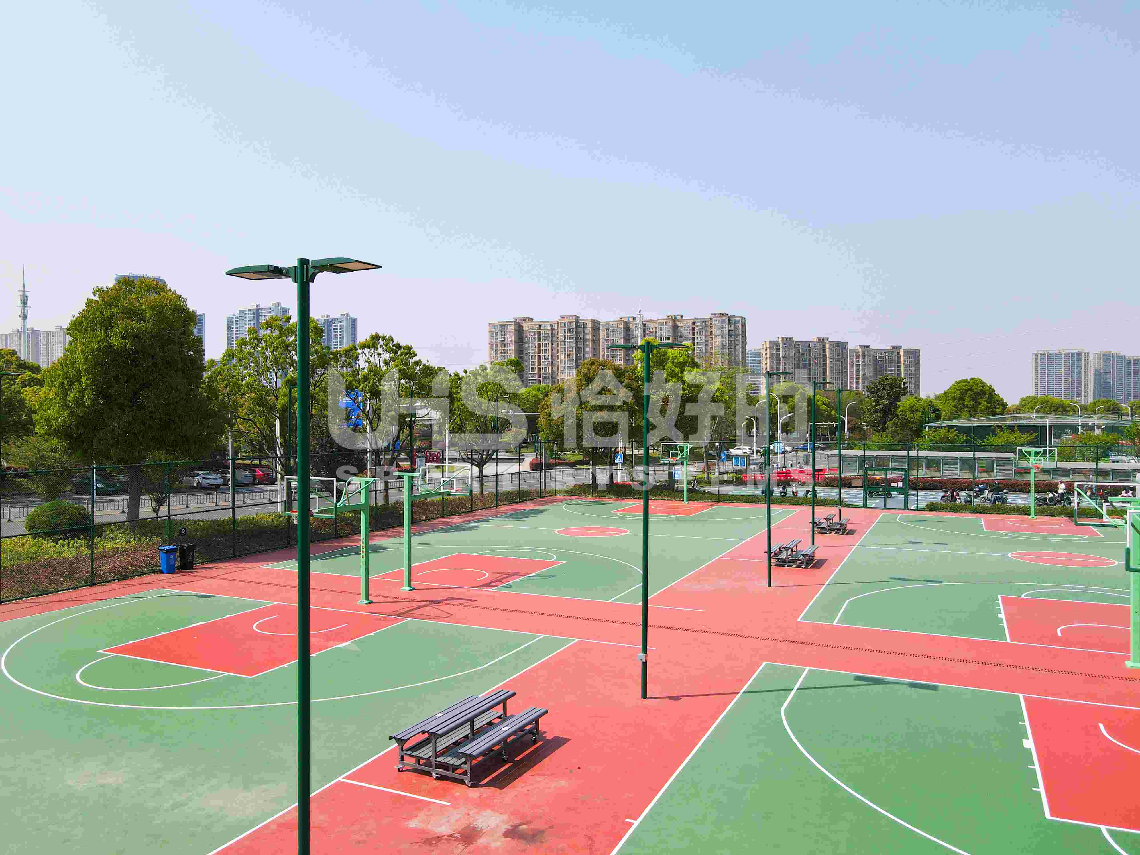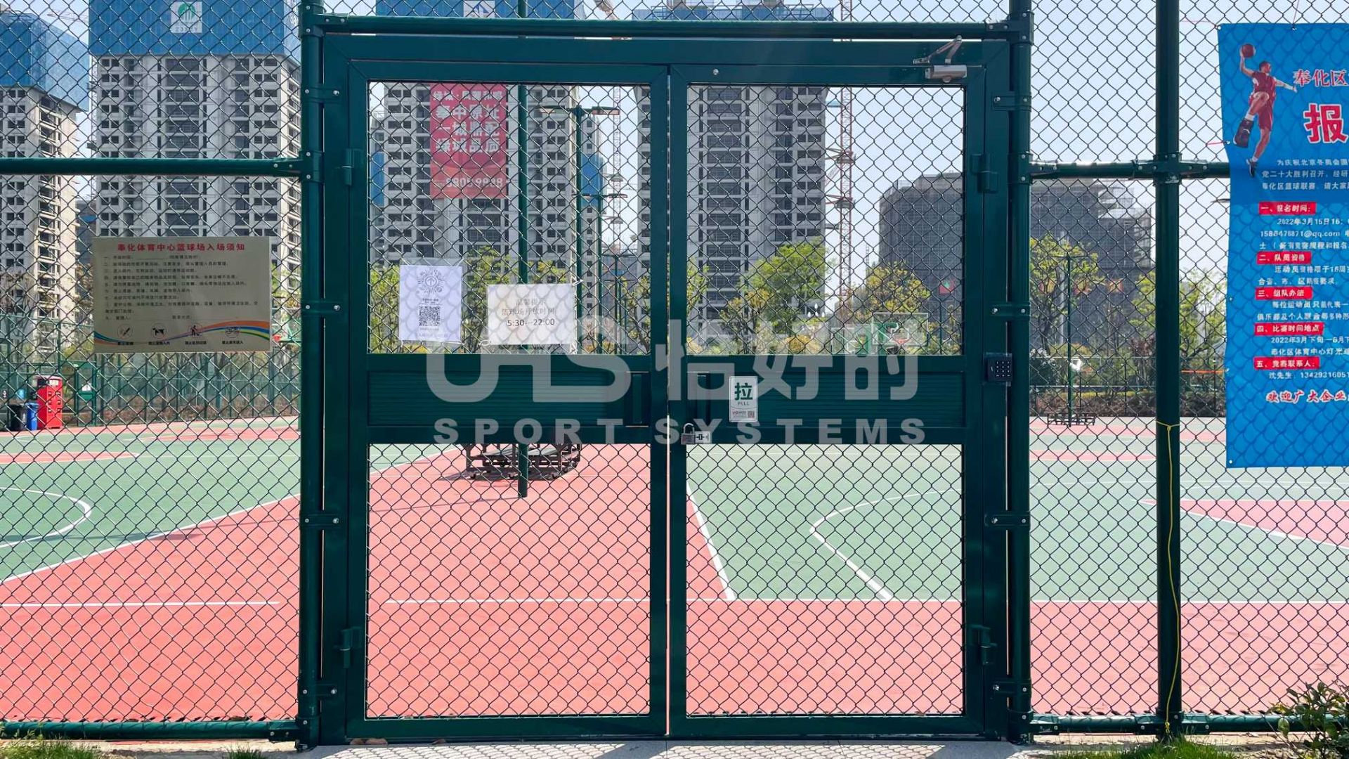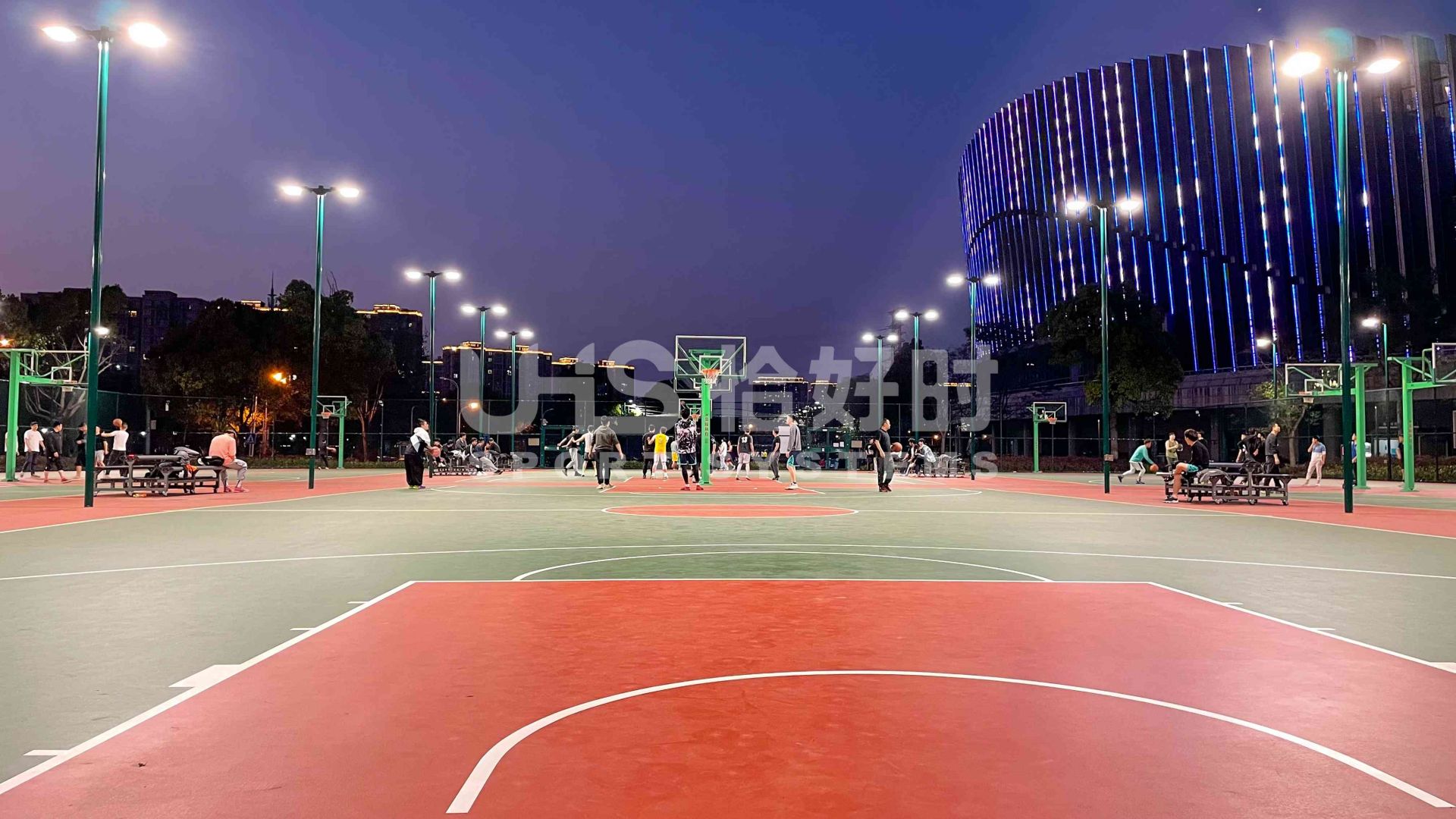 奉化体育中心室外篮球场和门球场,选用了恰好时体育场地配套设施、UHS-1008精铸合金十字扣件拼装围网和明利亚照明体育系统专业球场灯LTC系列。使用恰好时围网产品、明利亚照明产品打造的运动环境,外在美观、内在舒适,为群众在此开展休闲体育活动保驾护航。