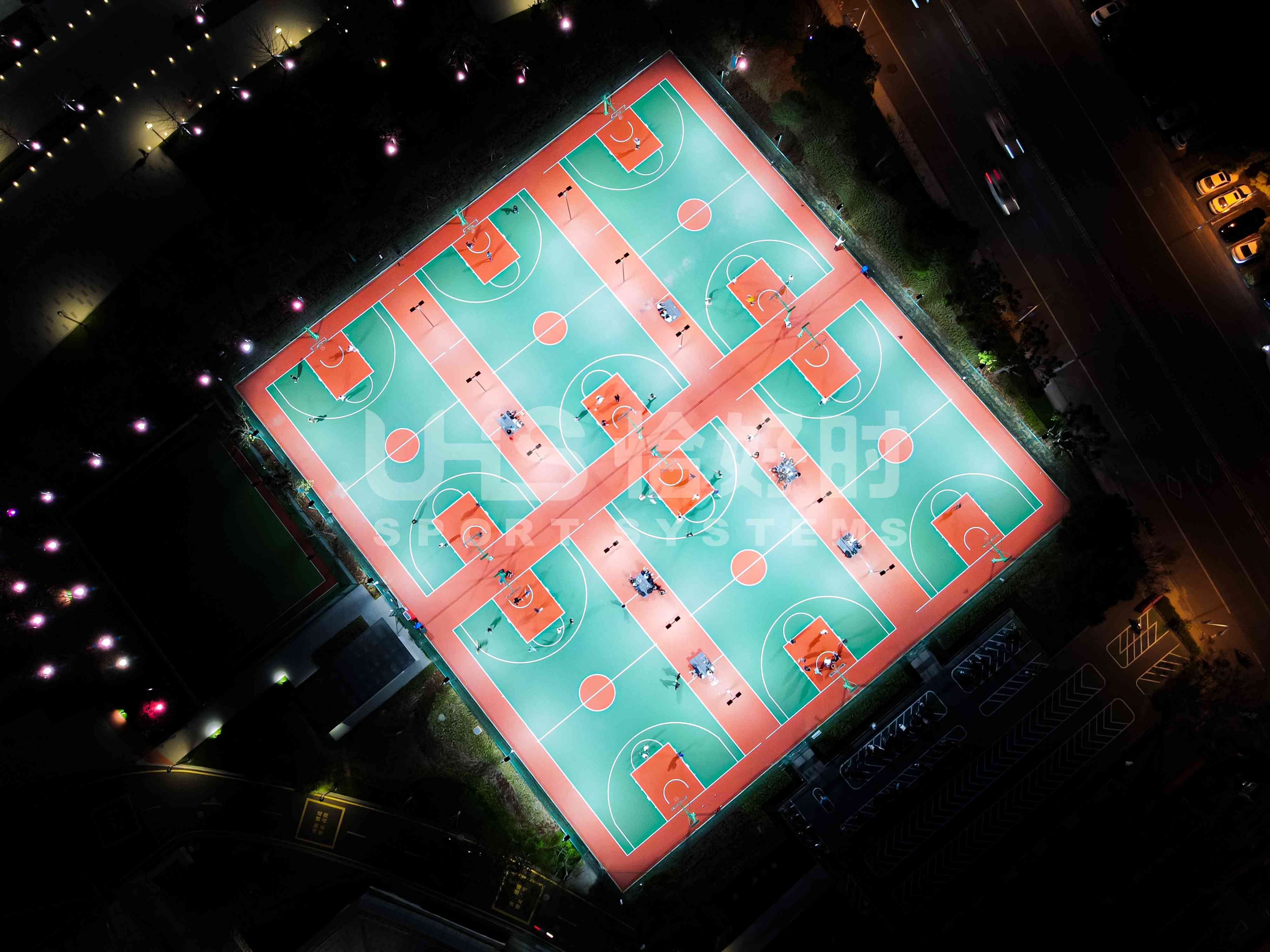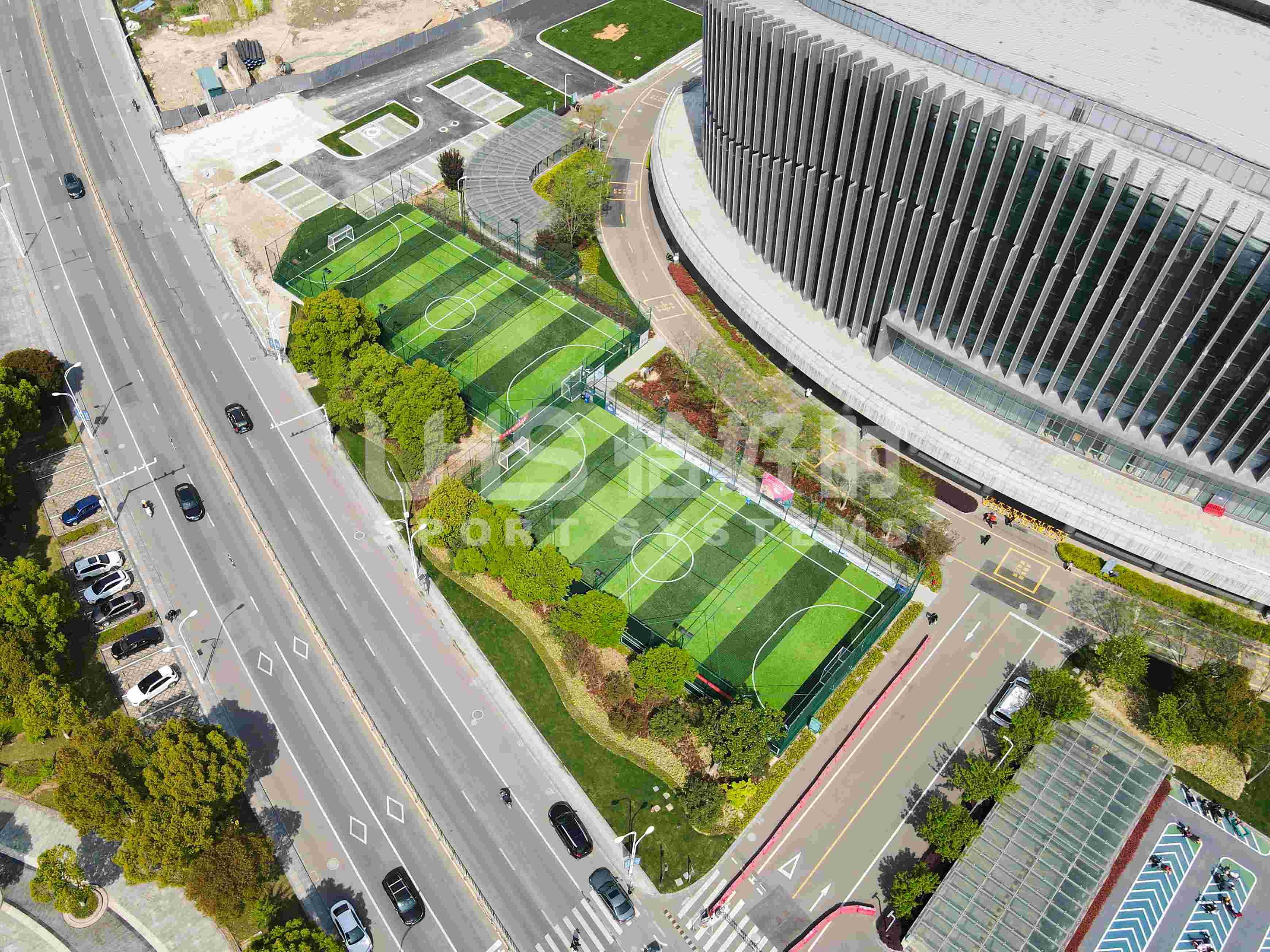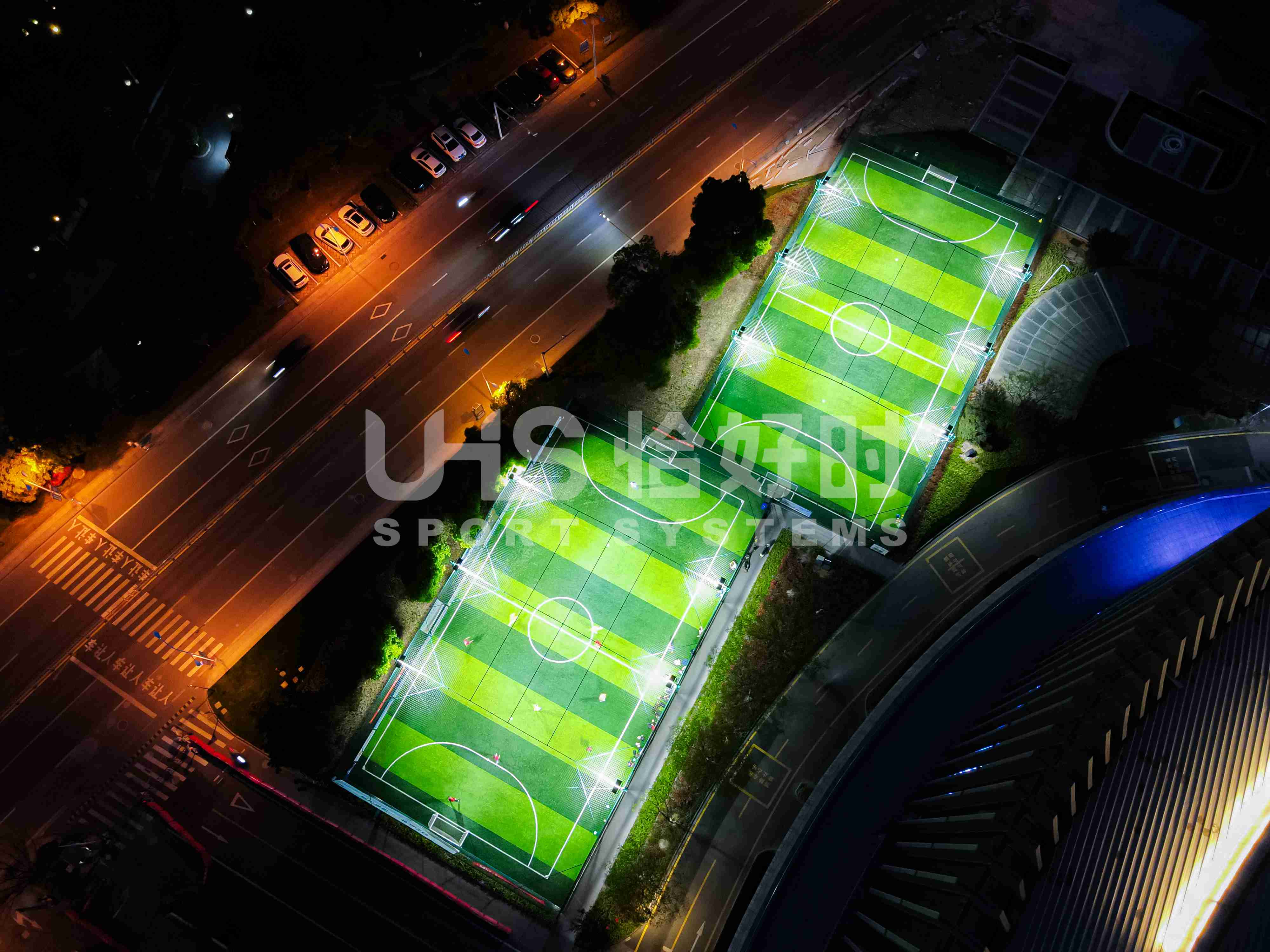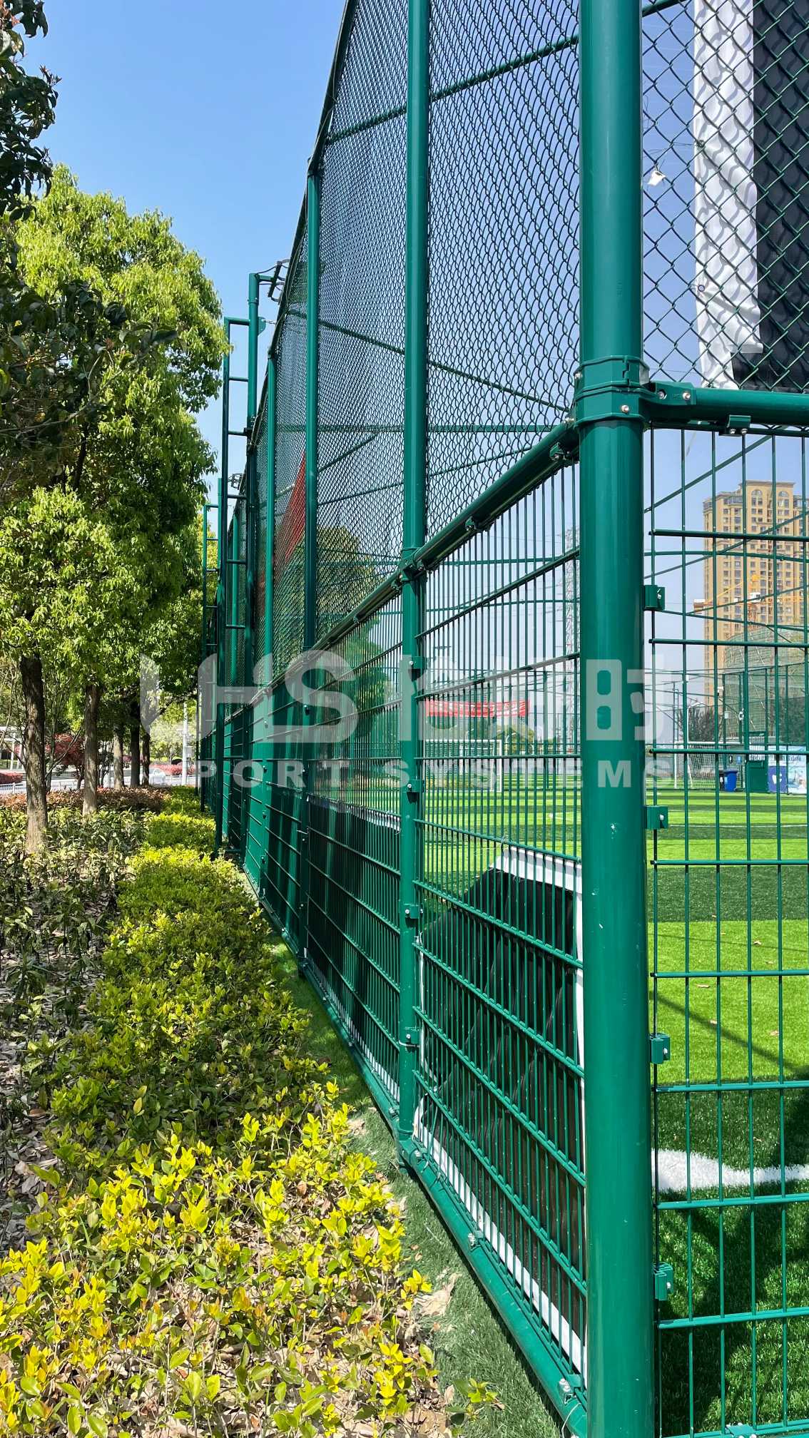 奉化体育中心室外2片笼式足球场,则是应用了恰好时UHS-1010双夹丝拼装围网系统+明利亚照明体育系统LFL系列LED投光灯。UHS-1010双夹丝围网在深圳足球青训基地、大连万达足球青训基地等大型专业足球场地亮相的围网,其极强的抗冲击性和稳定性,可以满足专业竞赛级别足球场的使用需求;搭配UHS-1008精铸合金十字扣件拼装围网,保护群众运动的人身安全,让足球激情无惧释放!