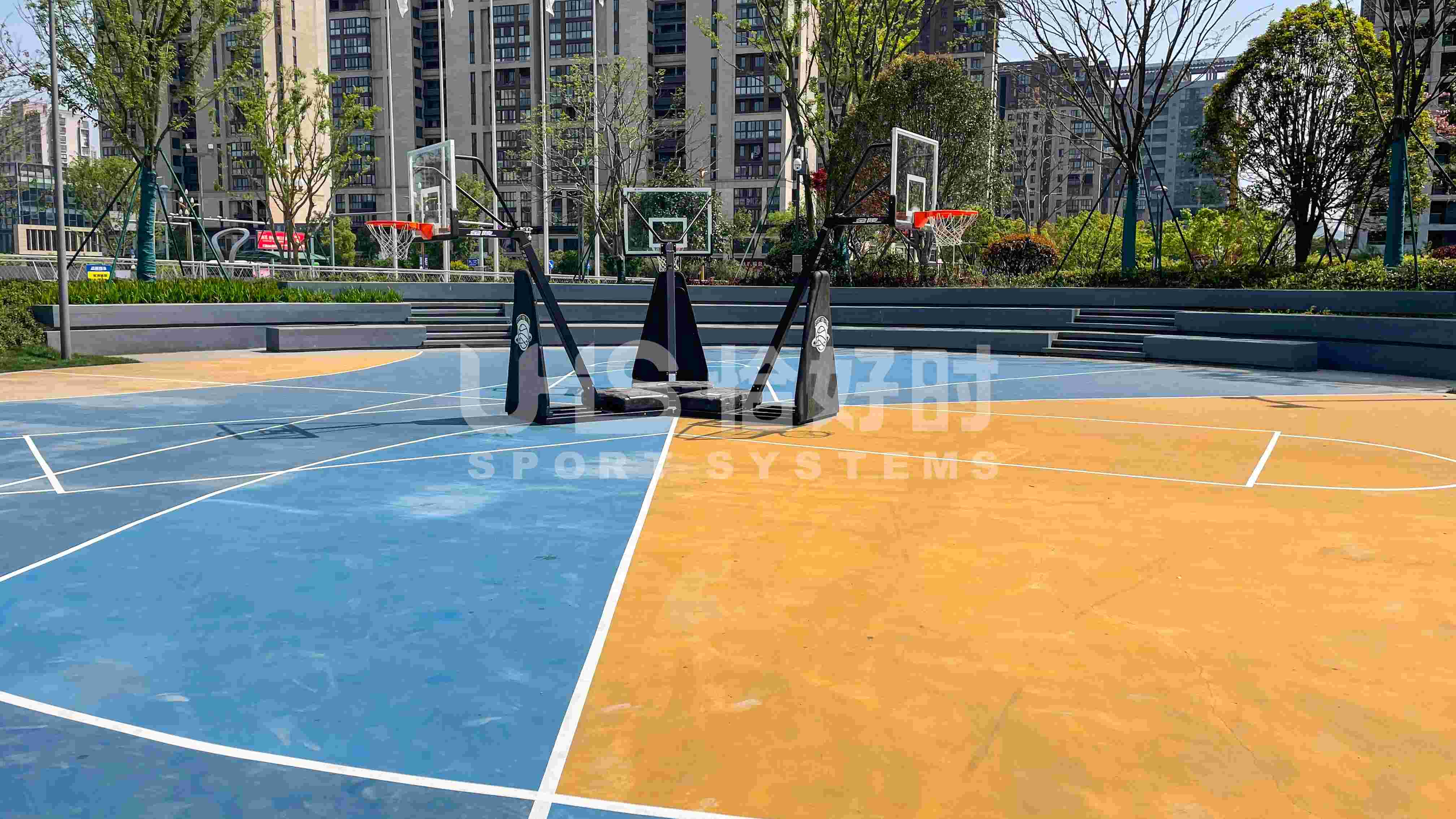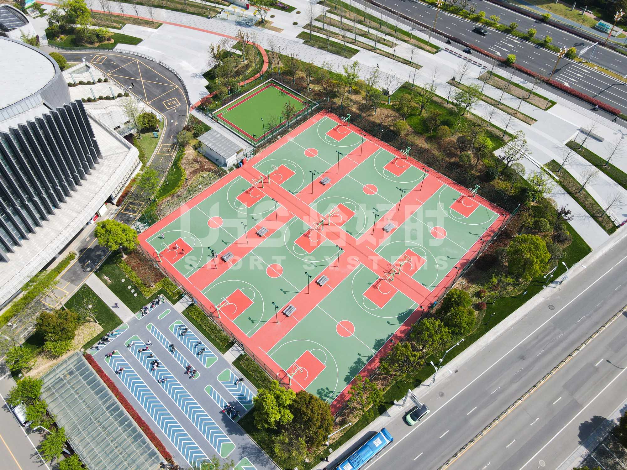 奉化体育中心可以满足不同年龄段的运动需求。儿童篮球场地面使用了TOPLUS托柏斯水性运动场材料高弹缓冲系统,看台则使用TOPLUS托柏斯水性运动场材料公众看台系统。弹性地面保护儿童运动安全,耐磨的特性使地面使用寿命长久,丰富的色彩让此处成为体育中心的点睛地标!