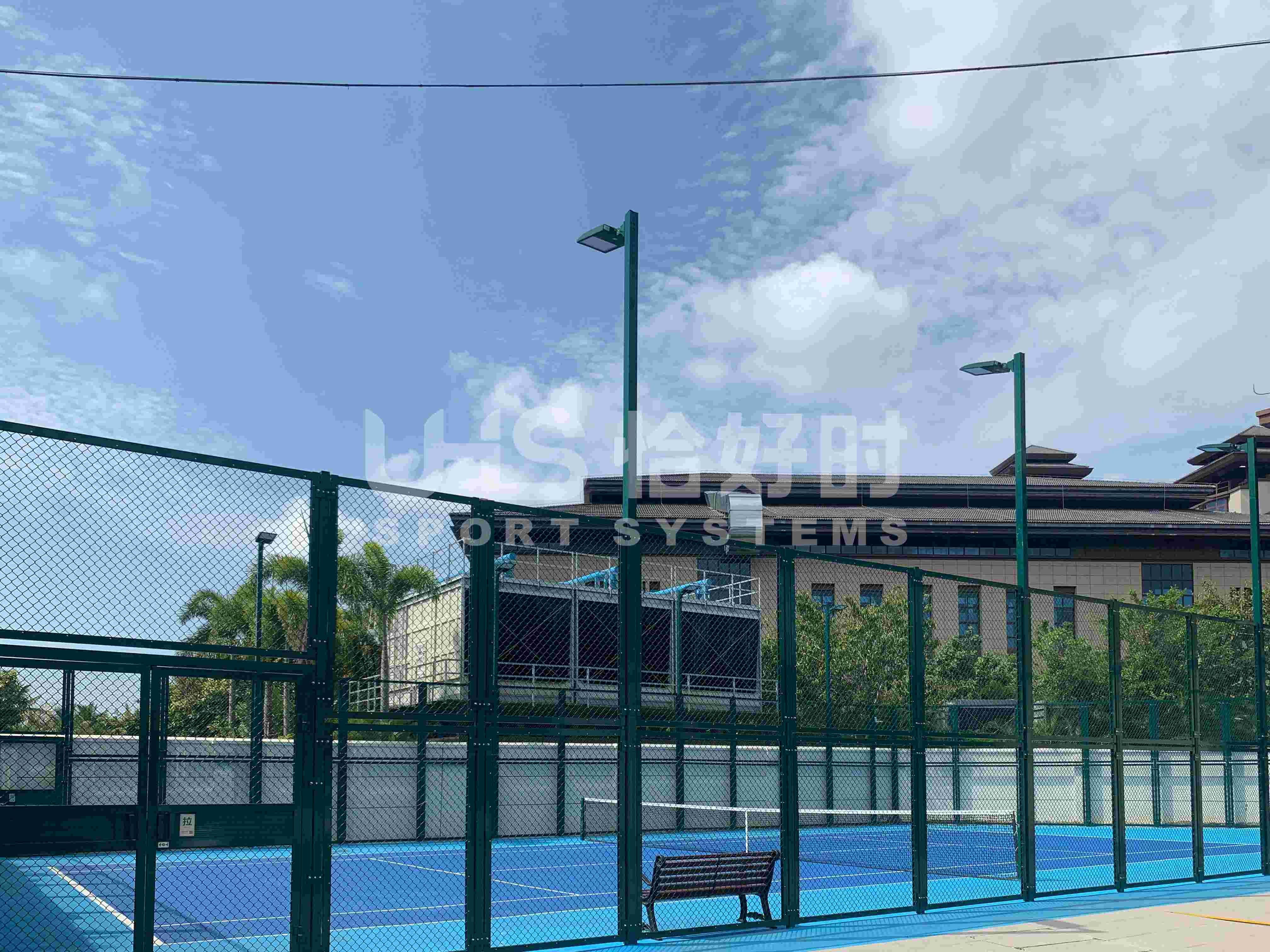 海南碧桂园清泉城体育场,绿化环绕、风景宜人。在此体育场运动,即能感受运动的快乐,又能感受典型热带季风气候的独特魅力。体育场包括一片网球场和一片篮球场,球场选用了恰好时体育场地围网系统、明利亚照明体育系统和恰好时体育场地配套设施系统,其中羽毛球配套设施使得运动爱好者们也能在此开展羽毛球运动,丰富来宾的运动选择。