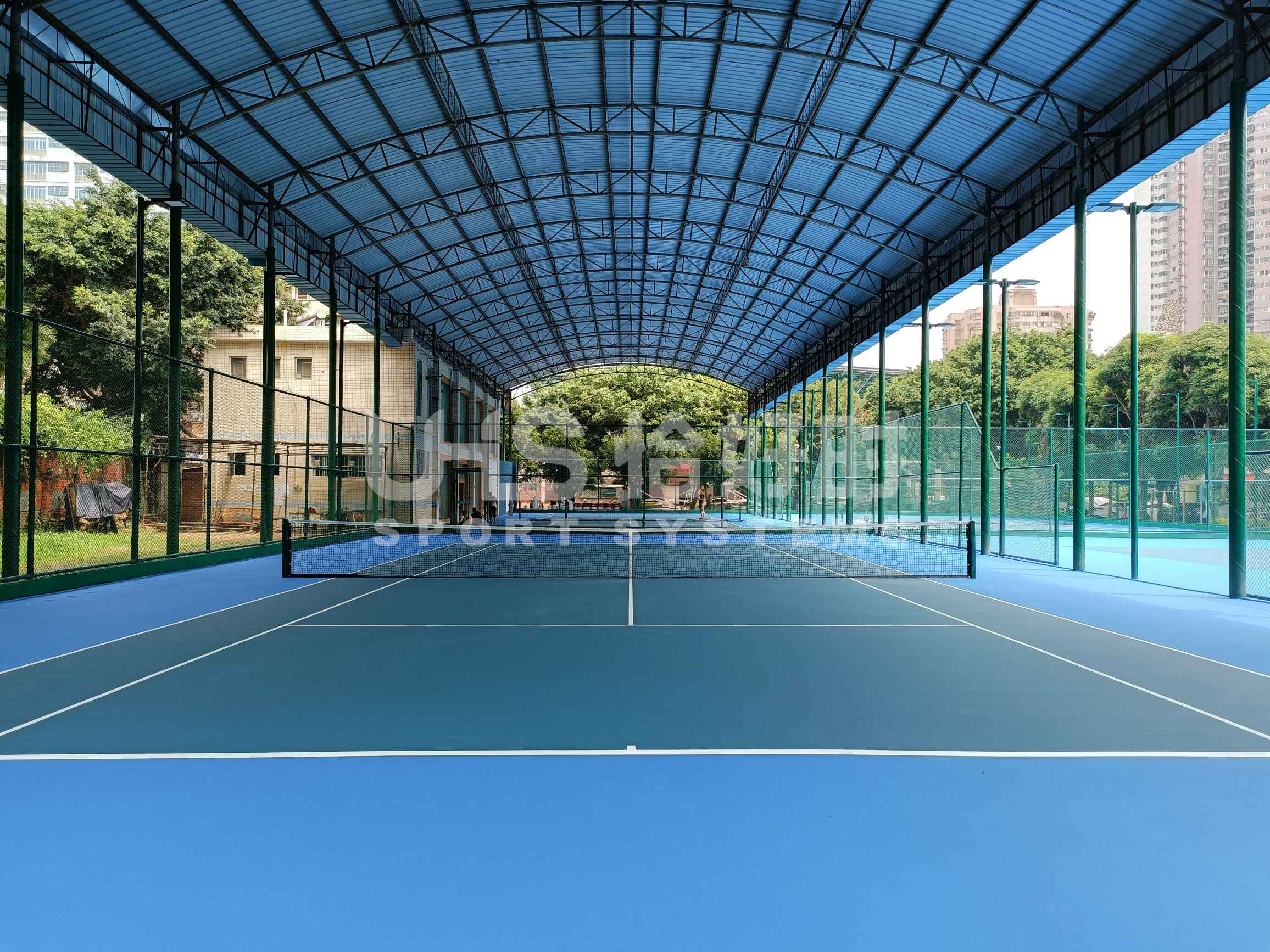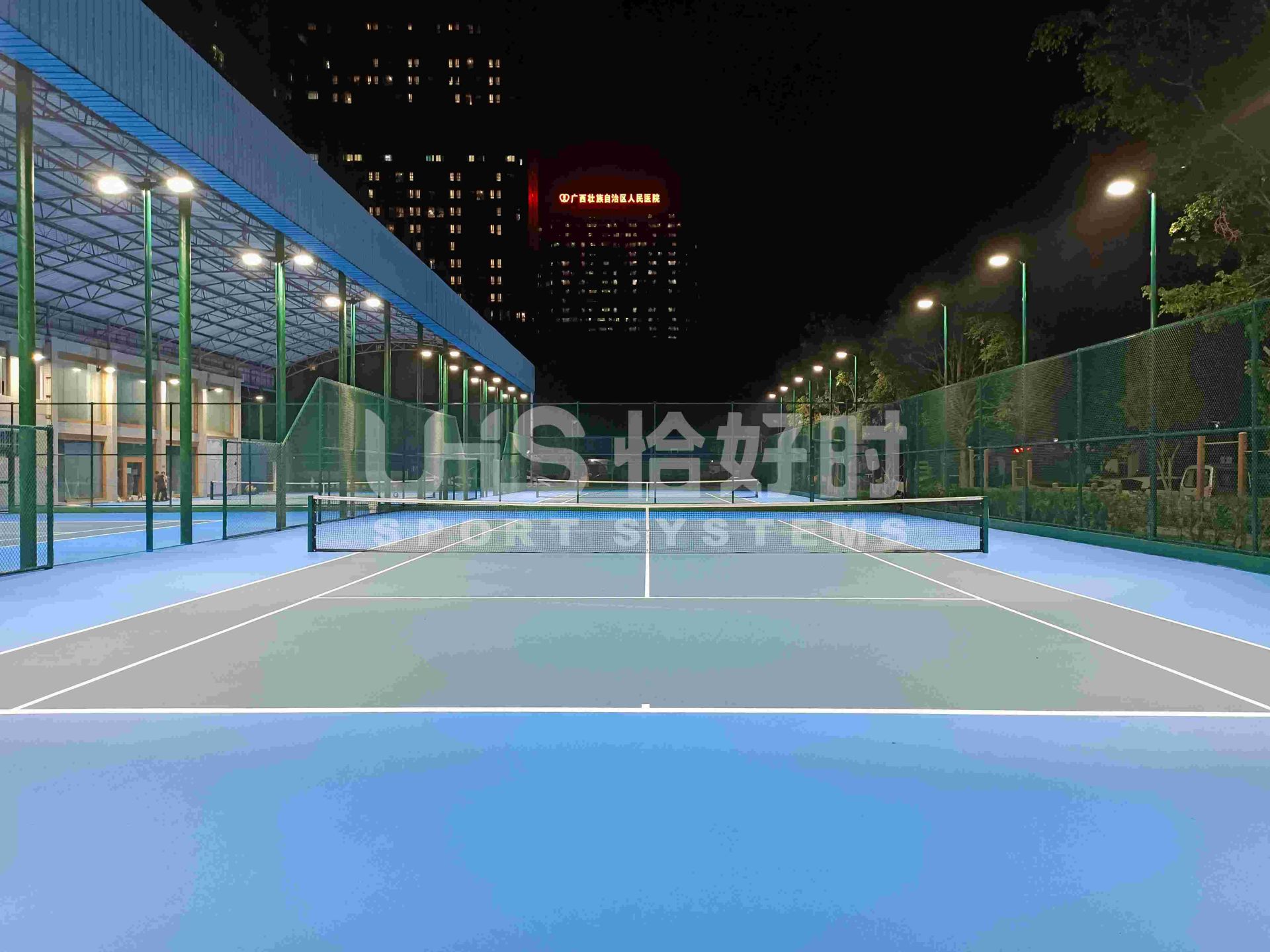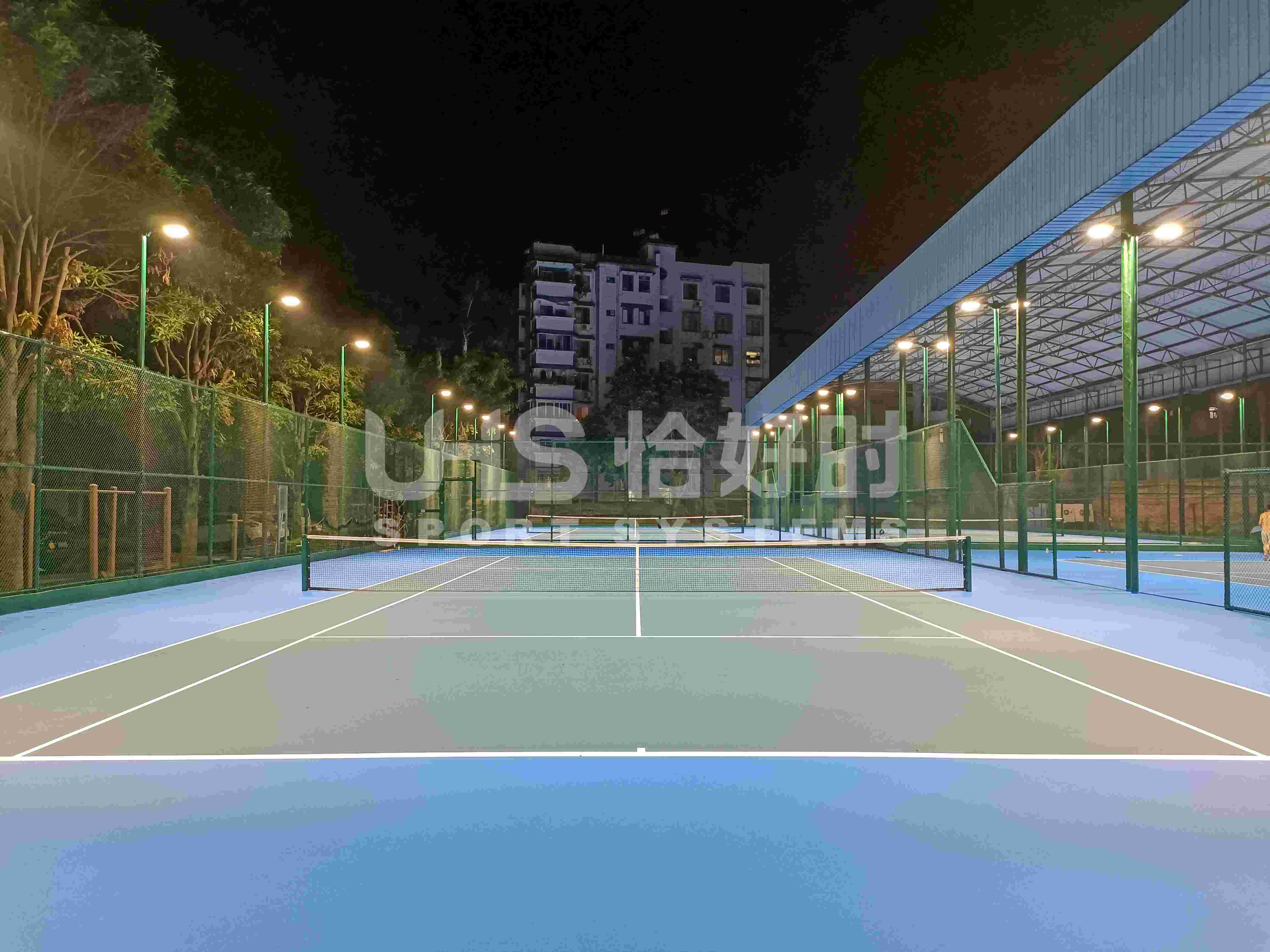 该项目的网球场地面材料、精钢冲压拼装围网、专业体育照明灯光及配套设施器材均采用恰好时品牌产品。