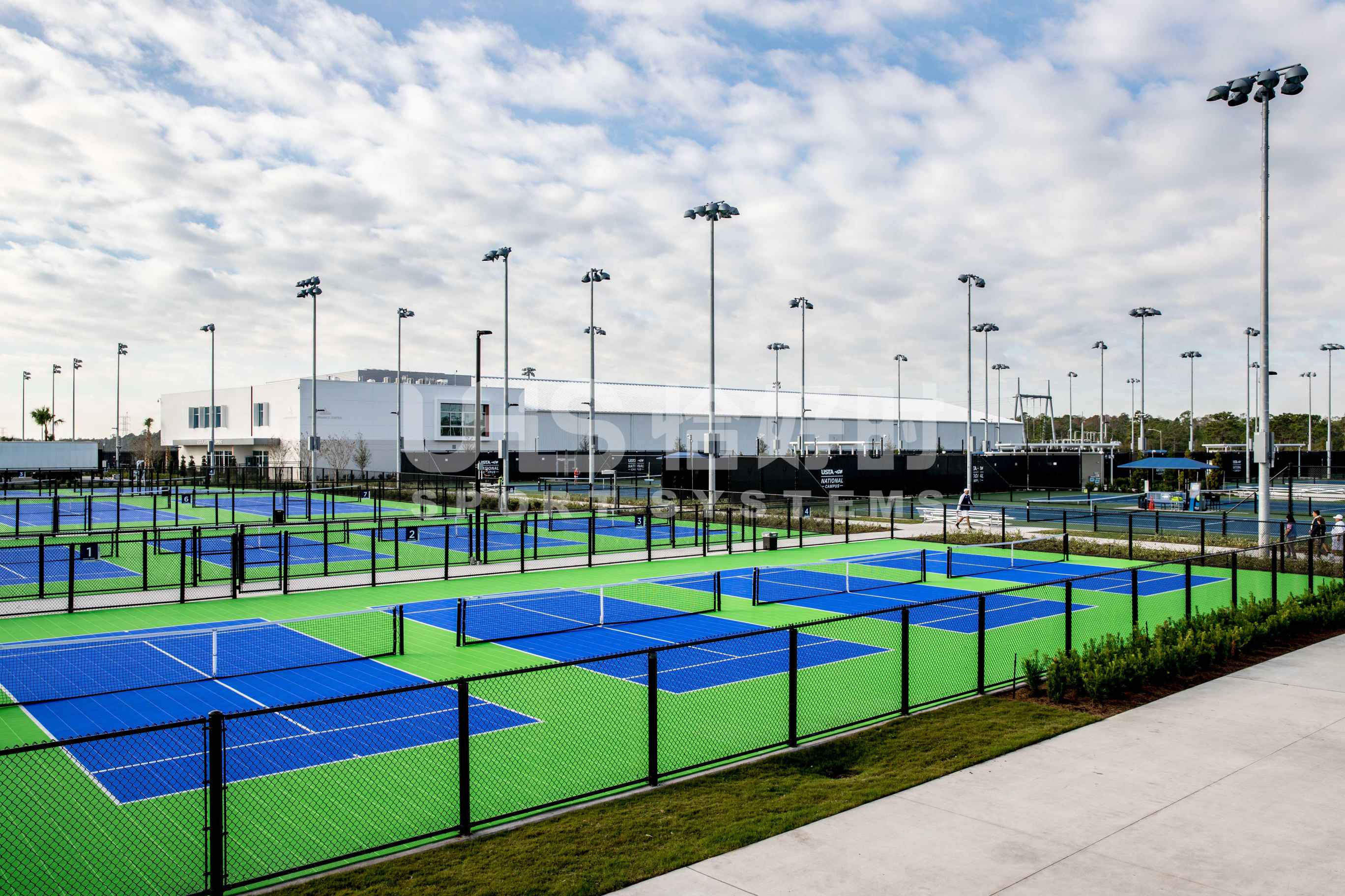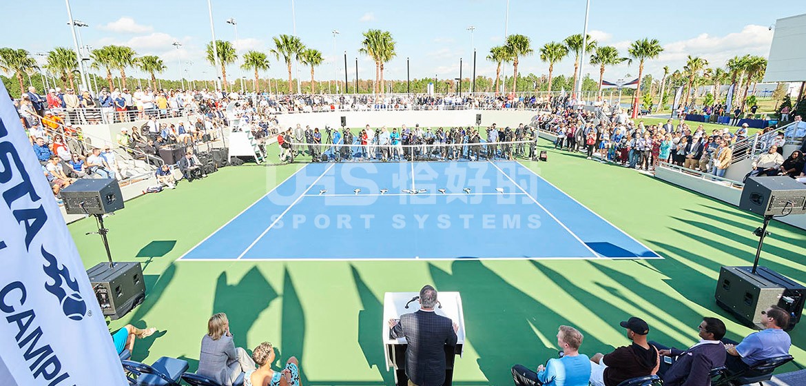 USTA NATIONAL CAMPUS即美国国家网球学院是全球最大的网球学院,也是培育美国网球人才的摇篮。位于佛罗里达州的奥兰多市。学院占地面积达64英亩,拥有100片网球场,包括硬地、红土 、绿土 、草地等多种场地类型。学院所配备的裁判椅均为恰好时品牌系列,其中TP-899共有20套,TP-809共有56套,用于其中86片球场。