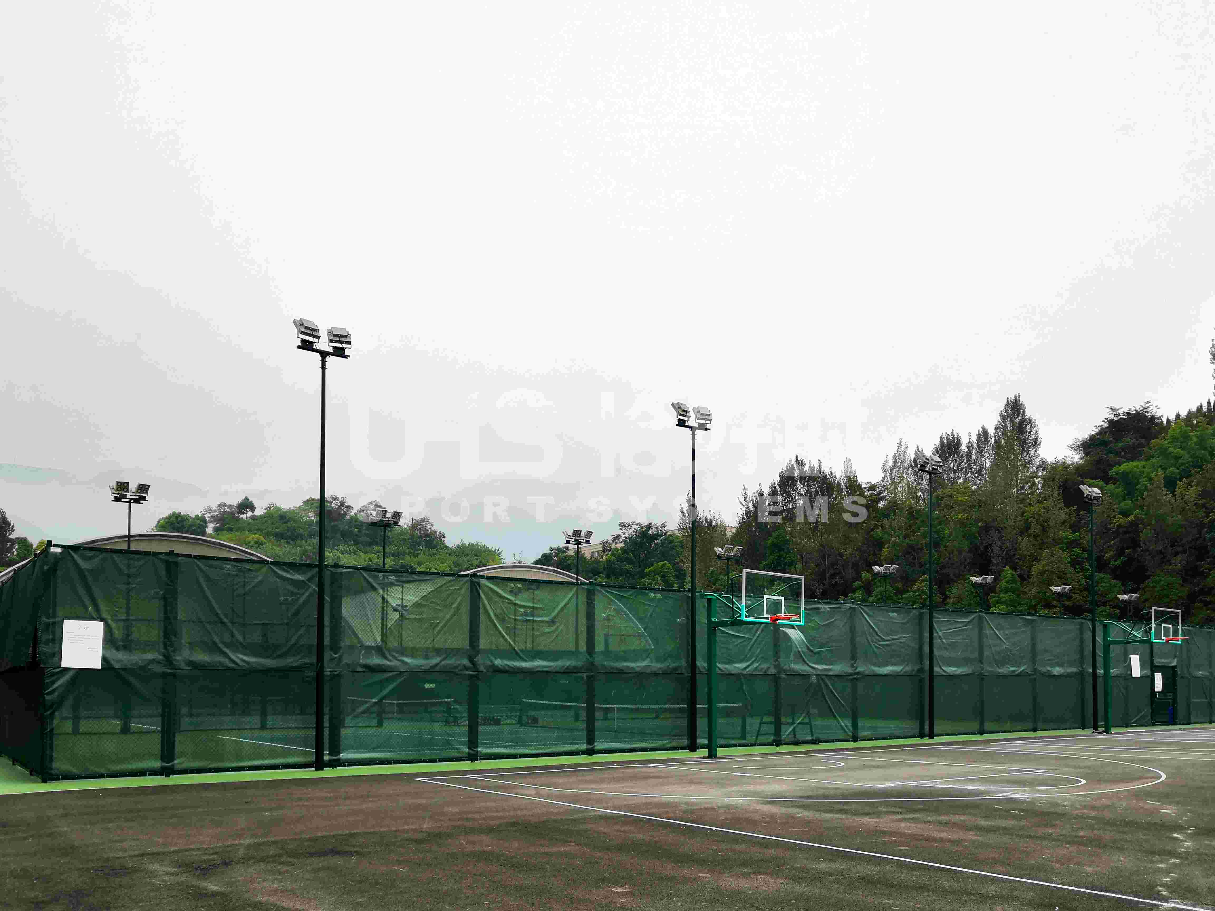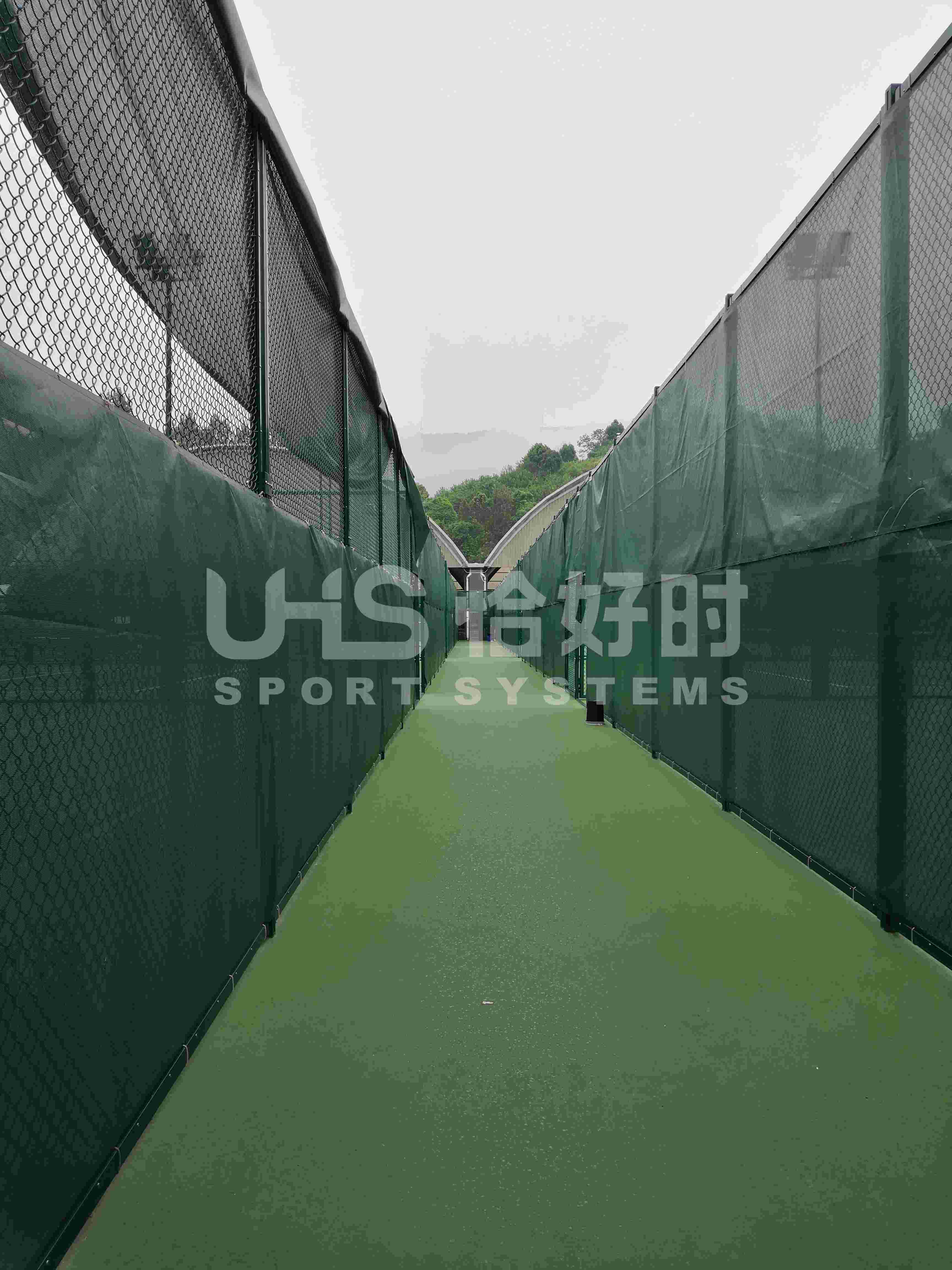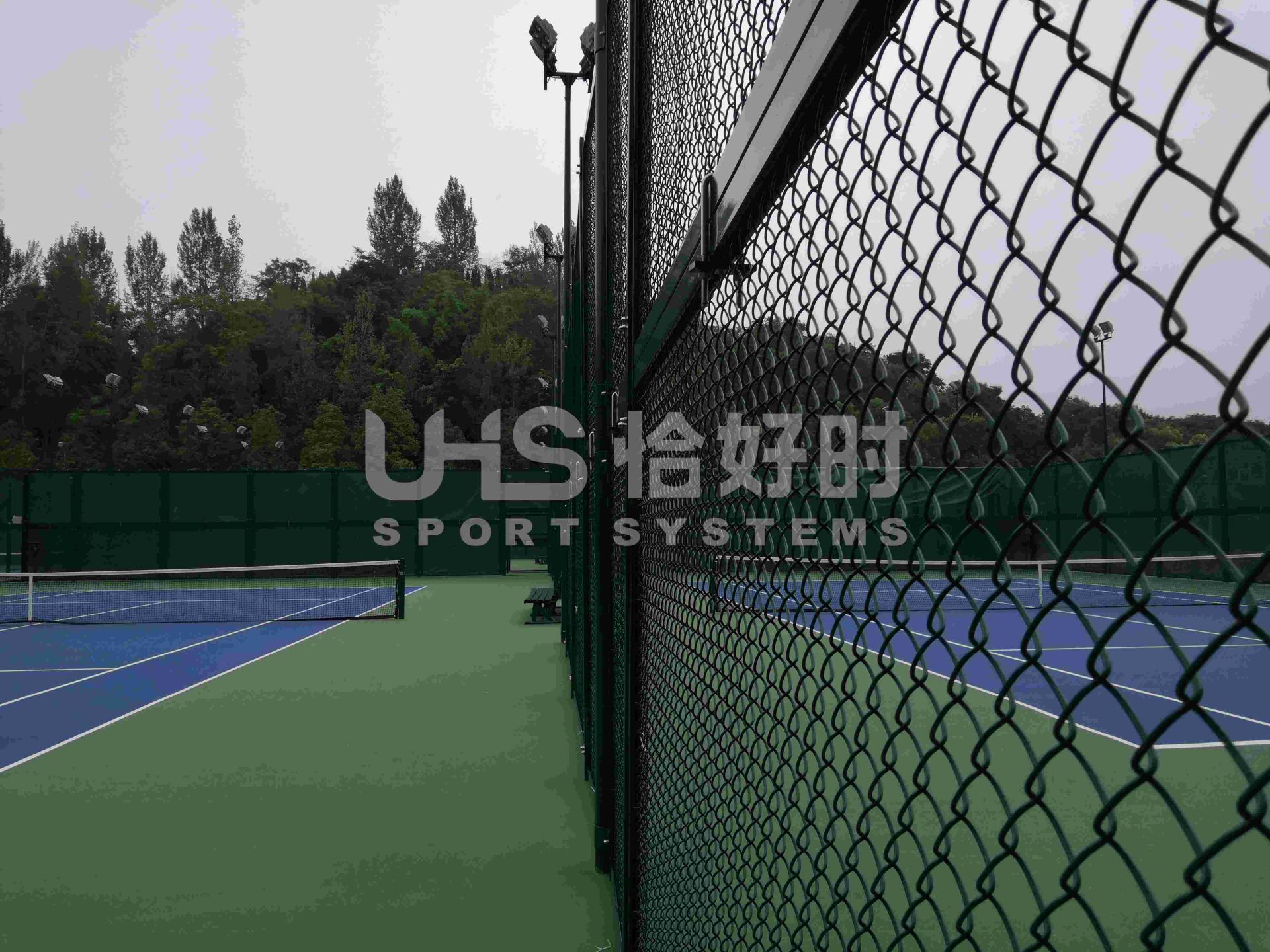 项目是校园内8片室外的网球场,翻新前原来采用传统的焊接式围网,已年久失修腐化严重,具有非常大的安全隐患。 恰好时翻新的围网采用旗下拼装围网系列中使用寿命最长的UHS-1101全铝合金框架内藏式拼装围网,该系列的围网采用全铝合金的框架,可最大程度保证使用的年限且不会有任何腐锈脱落的可能。简单拼装、环保安全,美观耐用。此外球场的配套设施包括裁判椅、休息椅、网球柱、网球网、推水器也是出自恰好时。