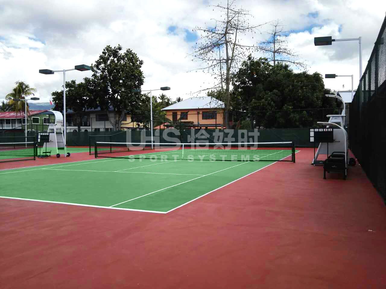萨摩亚是位于南太平洋的一个美丽的群岛国家,终年沐浴着海风,阿皮亚是萨摩亚独立国的首都,每年平均气温27℃,恰好时项目阿皮亚网球中心正位于首都的中心区域,毗邻着海风,风景非常秀美。网球中心的围网、裁判椅、休息椅、球网球柱均是中国制造的恰好时品牌。